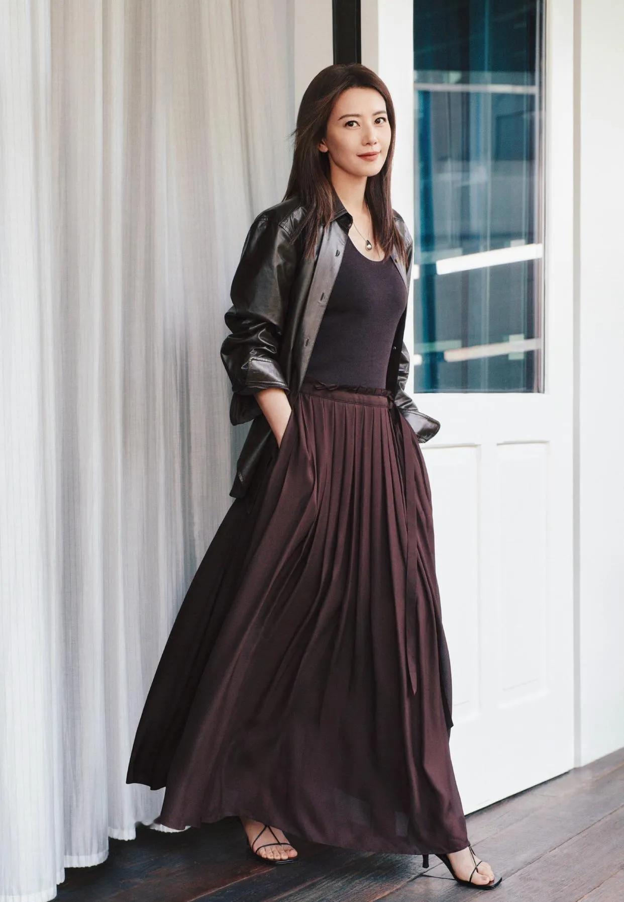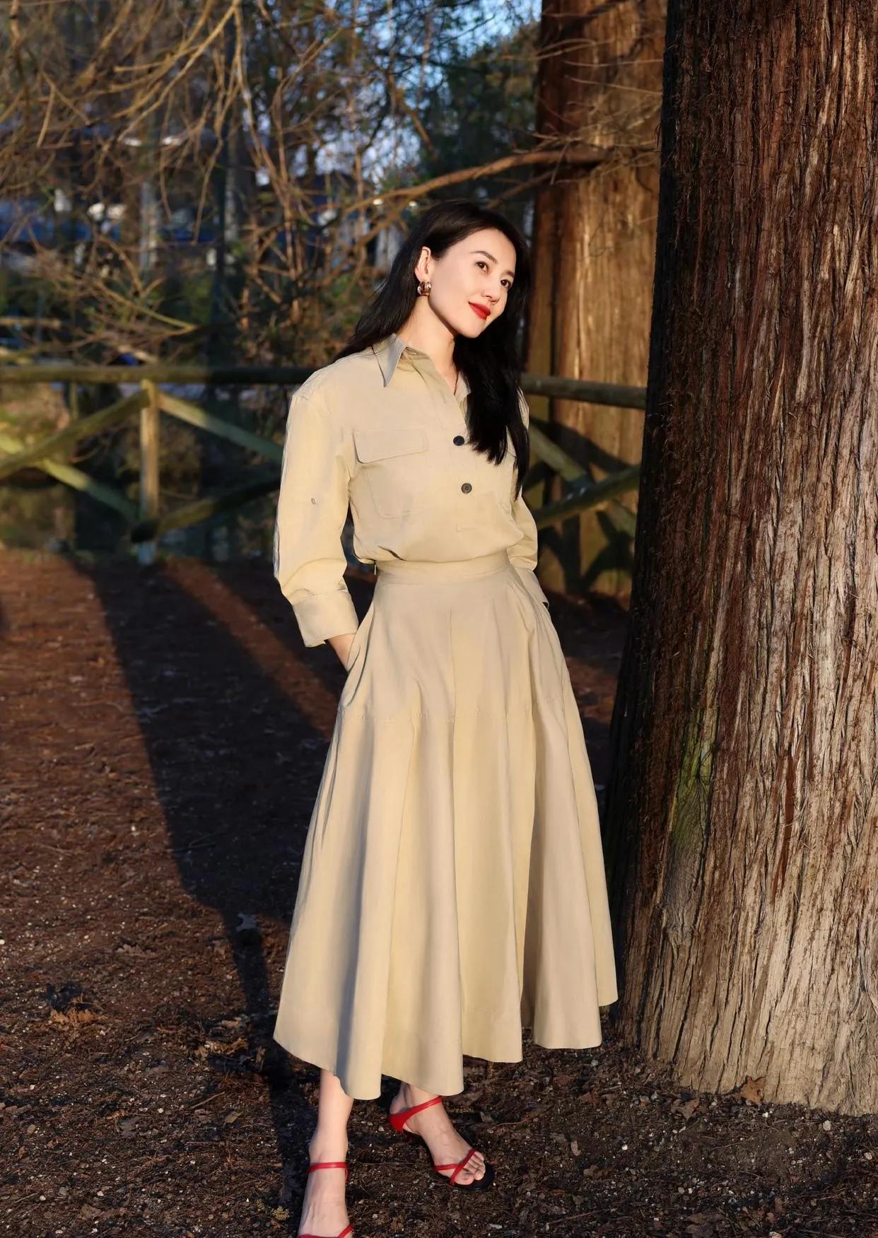 高圆圆这组穿搭写真,把“优雅”两个字刻进了骨子里✨ 白裙配红耳饰,仙气飘飘;卡其色套装在夕阳下温柔又大气;皮衣搭百褶裙,又美又飒。每一套都简约高级,不愧是国民女神,气质太绝了! 高圆圆 明星穿搭 优雅气质