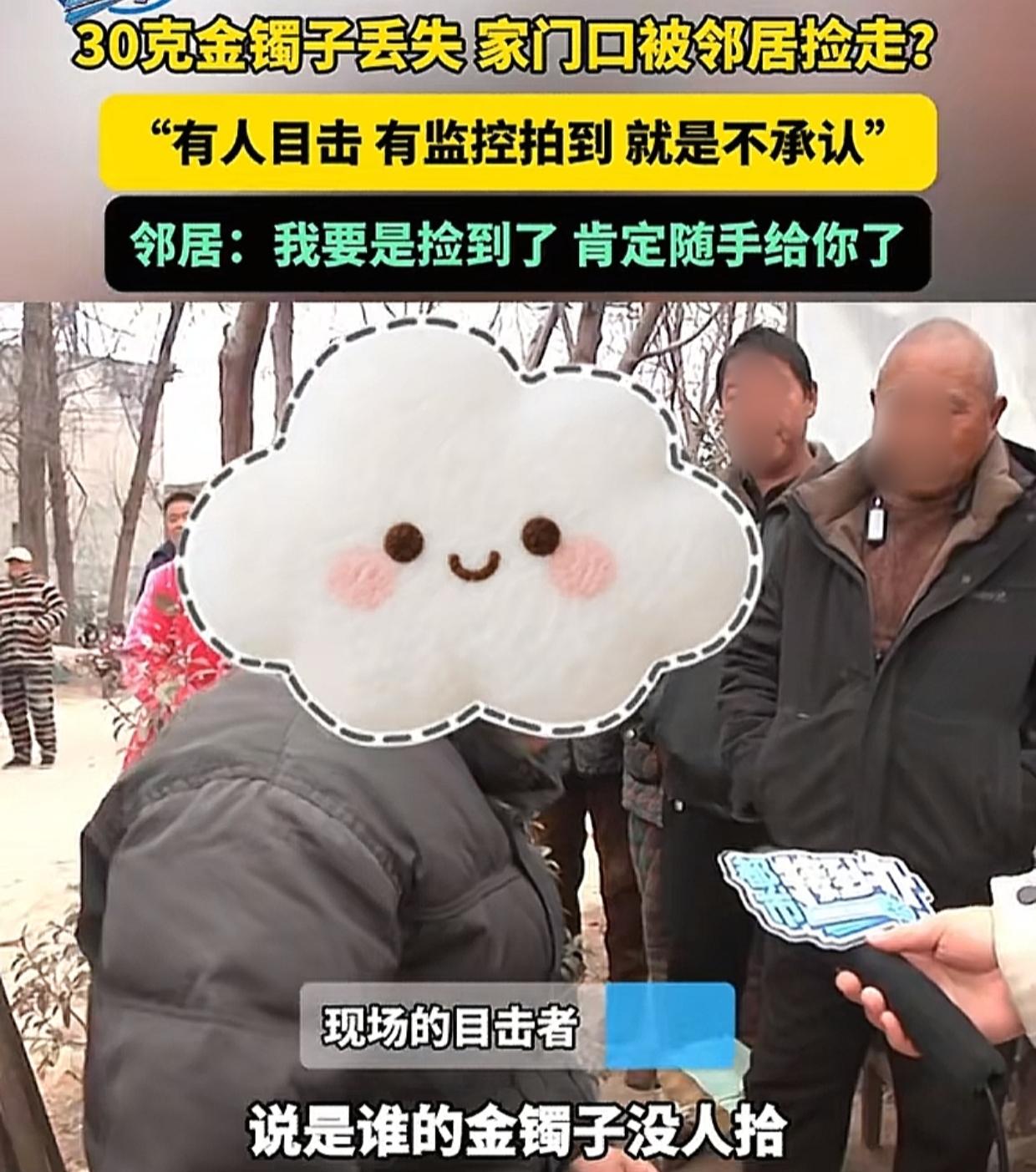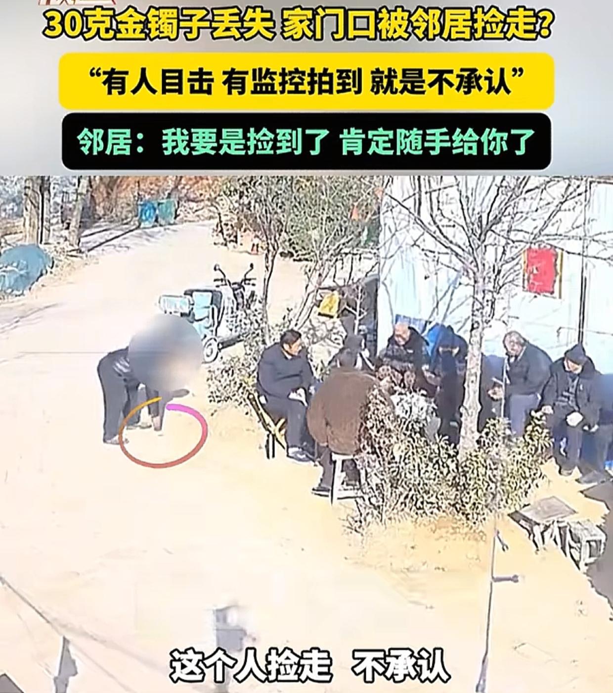河南,刘女士搭衣服时不小心,把一个30克的金手镯甩了出去,看监控是被邻居老头捡到了,同时也有人目击,谁知邻居老头死活不承认,红口白牙说:“我捡到一个木棍!” 刘女士和老伴气得没办法,先是选择了报警,随后又求助了记者。 记者赶到后,先是看了一下监控,发现画面中邻居老头确实弯腰捡走了一个东西,当时在旁边聊天的一位村民也作证说,听到了邻居老头边捡边自言自语:“谁的金镯子没人拾?” 按理说证据这么确凿,一般人也就承认了,可邻居老头不是一般人,他坚称自己当时只捡到了一个木棍,也没说过拾到金镯子之类的话。 记者忍不住质疑说,从监控画面上看也不是个棍儿啊,像是一个小黑点!”邻居老头恼羞成怒,那金手镯能是黑的? 随后邻居老头干脆矢口否认捡东西的人是自己,他说监控中的人穿着黑皮衣,但是穿黑皮衣的人多了! 对于邻居老头前后矛盾的说法,记者很无语,问他为何一会儿说捡到东西了一会儿说没捡,邻居老头解释不出来,只是一番诅咒发誓。 最后记者也表示没办法,表示这件事情只好等待警方处理,而刘女士在视频中向邻居老头喊话说,这个金手镯是儿子买给她的,对她来说很珍贵,希望邻居老头要是捡到了一定还给她。 说实话这件事情真的让人很无语,在有监控有目击证人,证据链这么清晰的情况下,居然还有人能睁着眼说瞎话,妄想着把别人的东西据为己有。 这不但是道德品质低下同时也是法律意识淡薄。 按照《民法典》第三百一十四条规定,拾得遗失物应当返还权利人。对方拒不返还,已涉嫌违法,像金手镯这种价值较大的东西,对方行为可能构成侵占罪。 法律不是儿戏,在证据面前,邻居老头的抵赖没有意义。刘女士及家人在面对邻居老头的无赖行为时没有采取过激行为,表示愿意等待警方的最终处理结果,也是一个非常明智的选择。