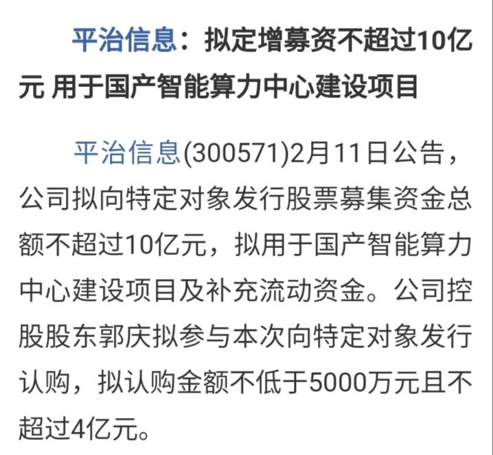 什么情况?一天之内两家上市公司披露定增再融资公告。 咱小散们是不是得感激涕零啊?这么多高科技公司把发财的机会和股份让渡出来,让咱们分享它们的发展成果和经济收益。 平治信息拟定增募资10亿元,龙磁科技拟定增募资7.6亿元。定增募资额多吗?孔乙己曰:“”多乎哉?不多也!平治信息目前动态市盈率451.42倍,龙磁科技动态市盈率52.67倍。估值高吗?高乎哉?不高也? 股价涨上天, 估值顶破天, 正好搞定增。 谁来接盘谁开心? 赶上了好时代, 上市公司乐开怀! 大家一起来发财!