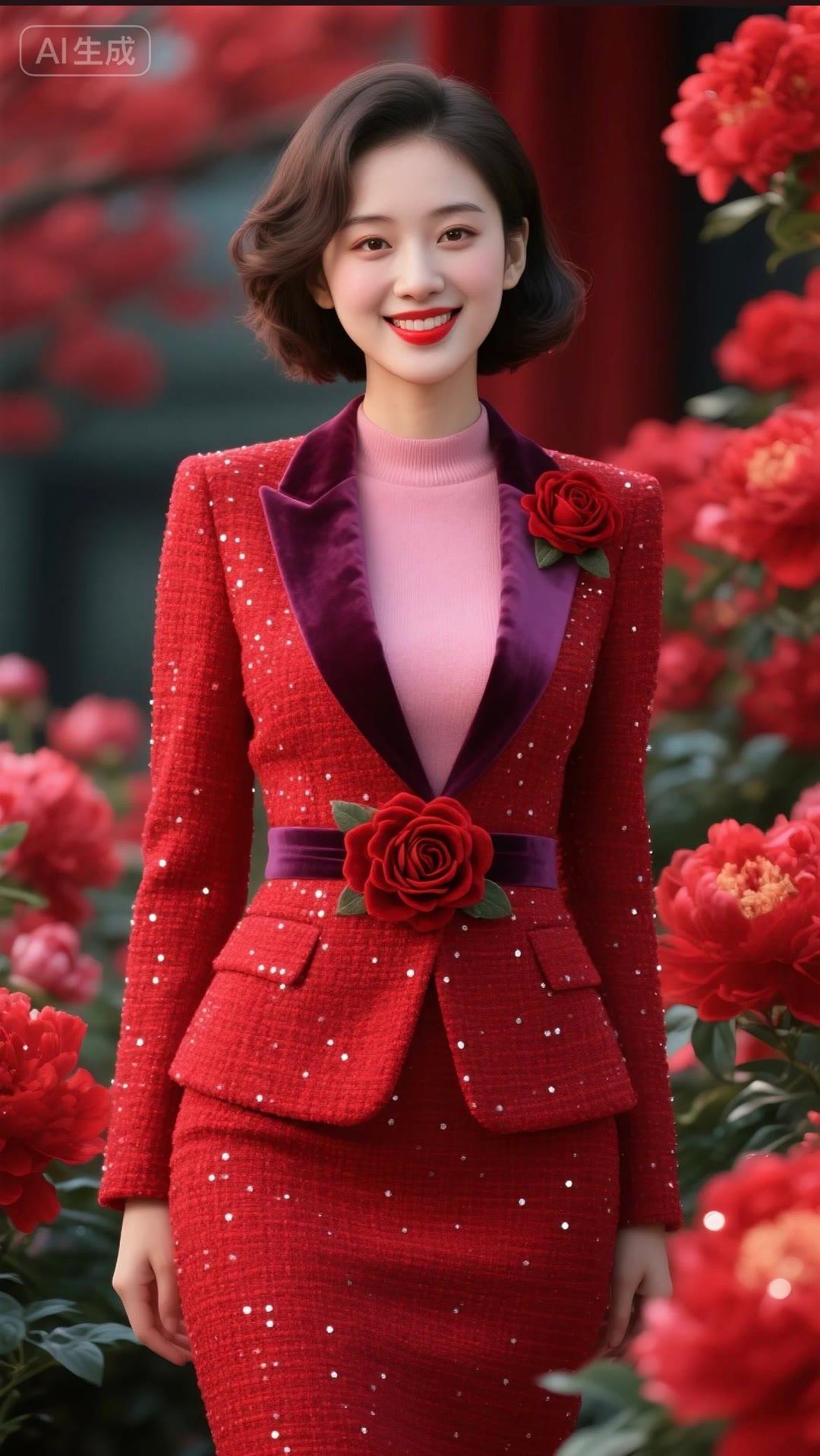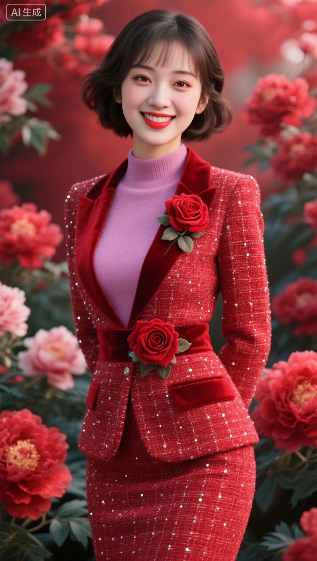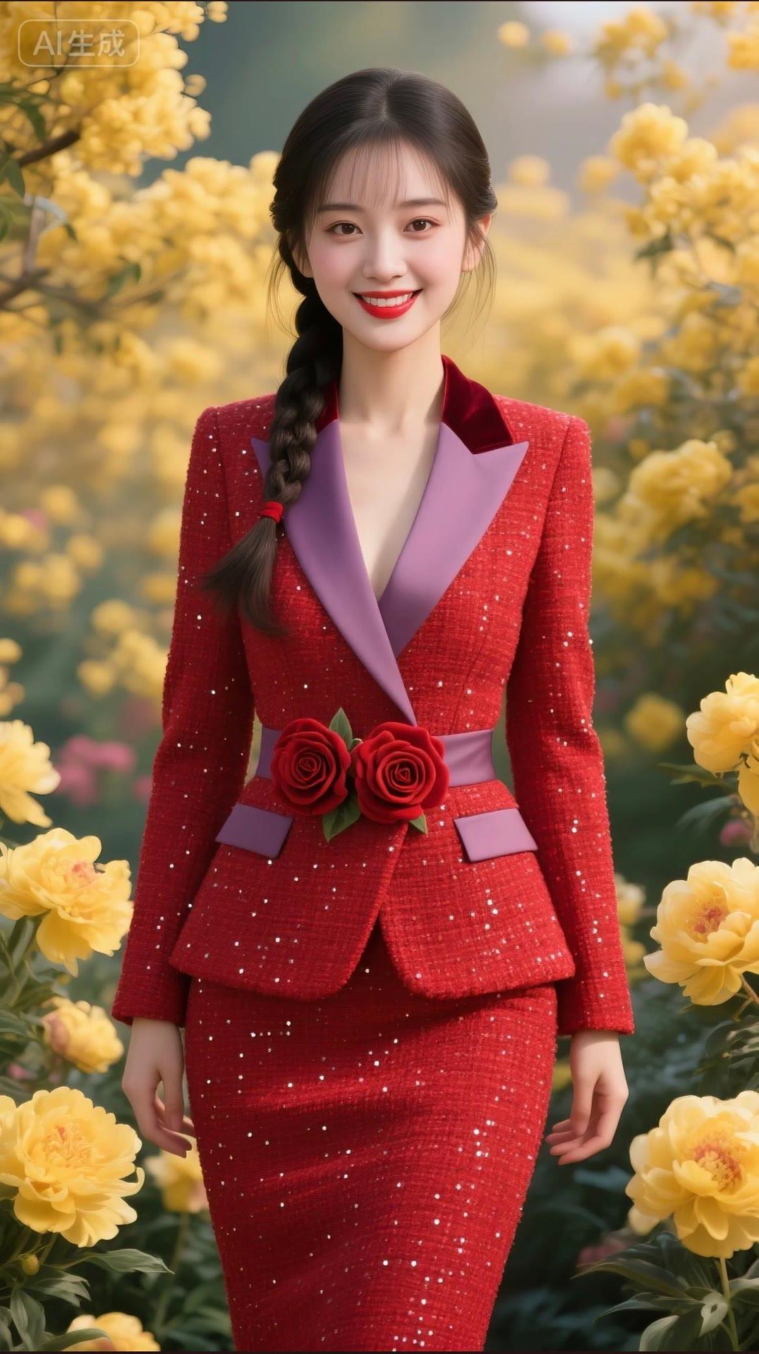 优雅红衣少女,置身花海,绽放迷人光彩!🌹💃🏻