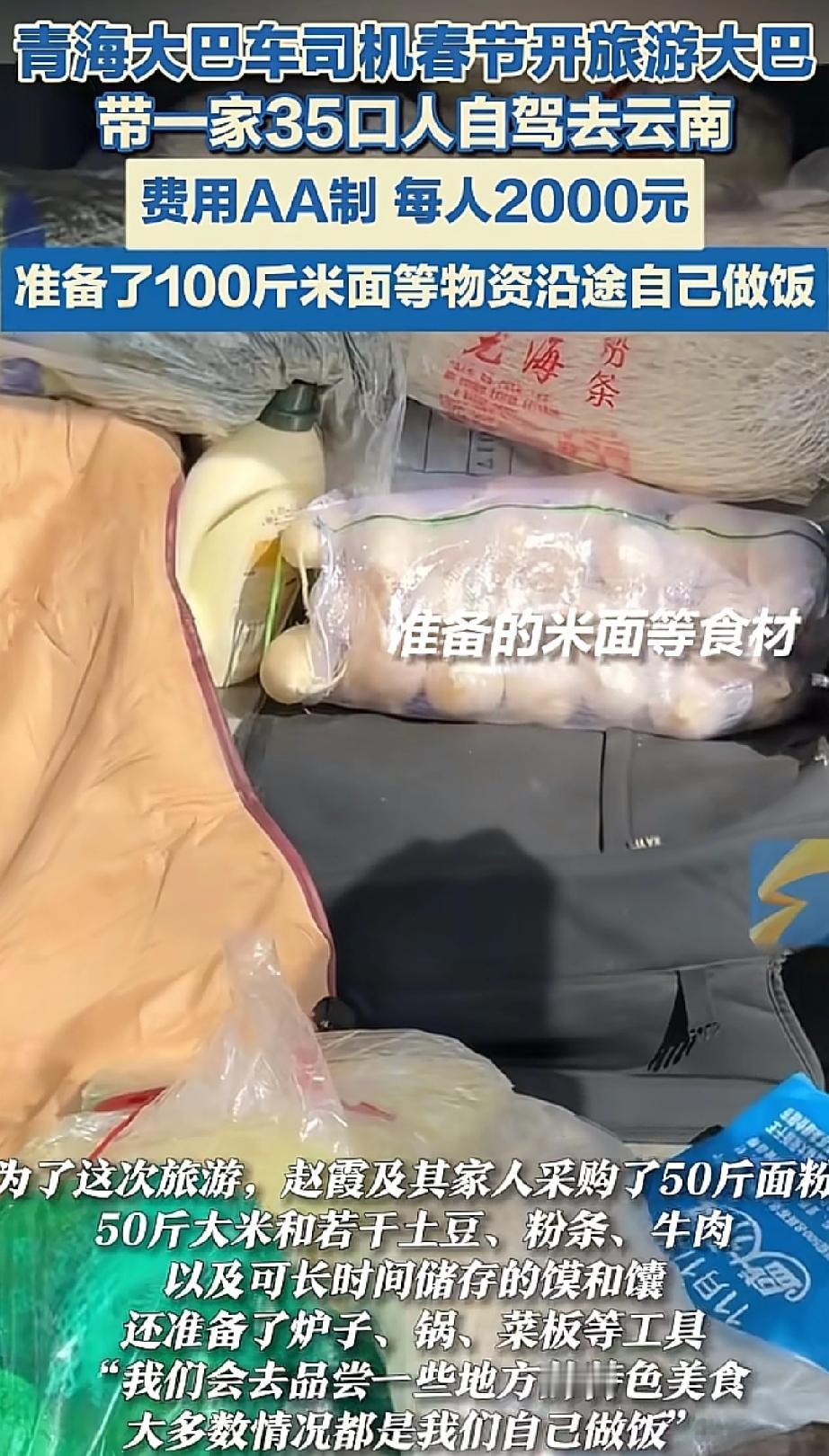 太羡慕了!青海一家35口人开旅游大巴赴云南自驾游,采购100斤米面等物资沿途自己