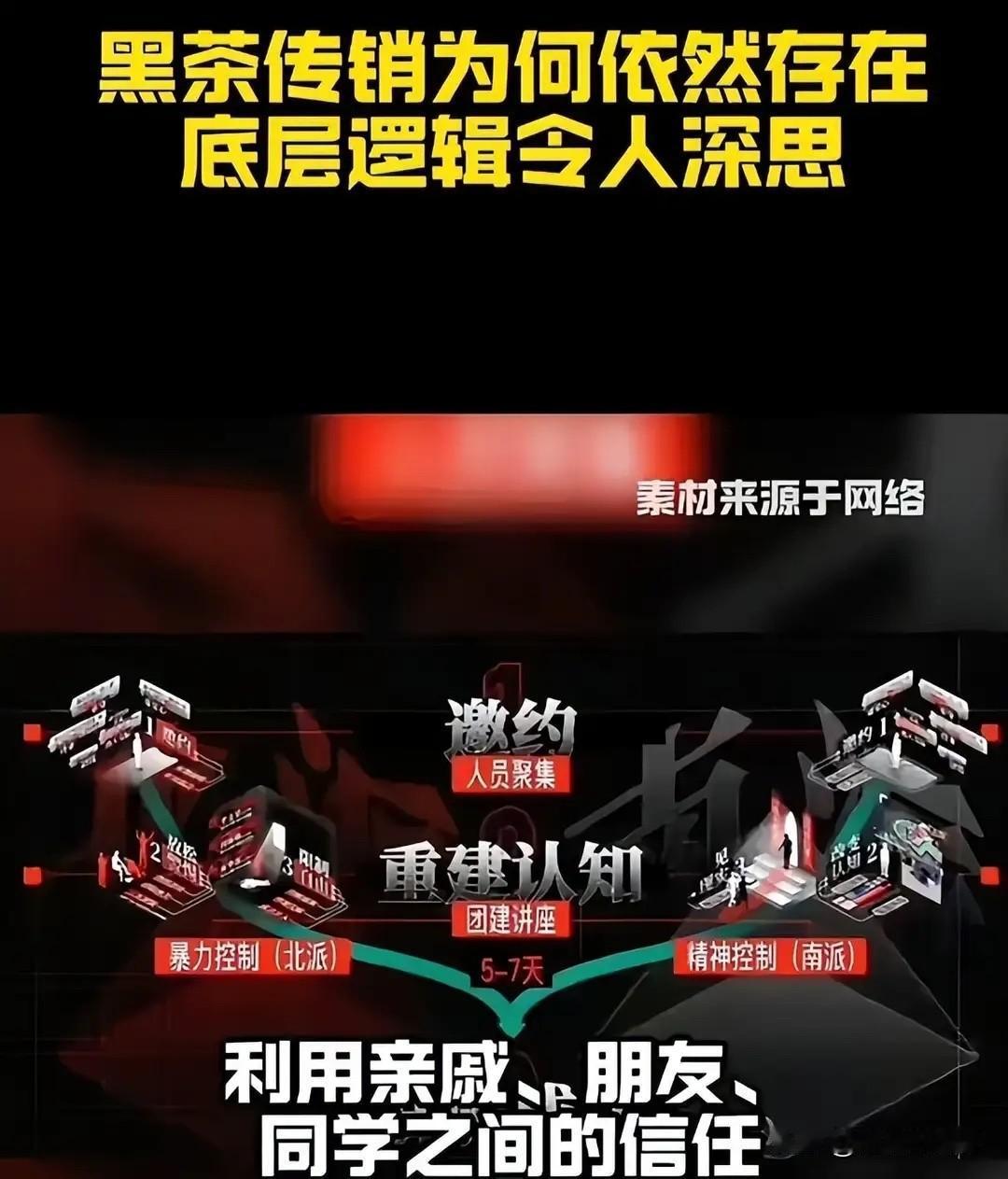 高档茶盘的后面,放着男人的皮带扣 38岁的圈圈第一次走进那间工作室,觉得这里比家还暖。 有人给她揉肩,有人夸她气质好,有人说她面相富贵、早晚发大财。她在服装店站了十五年,从没被人这么围着宠过。 后来她才知道,这叫“养鱼”。 养熟了,就该收网了。 半个月后她交了7000。两个月后她抵押了店铺,刷爆了信用卡。60万换来的,是客厅里堆到天花板、根本卖不掉的茶砖。 但比钱更先烂掉的,是她自己。 上线说,想翻身,得“有状态”。 状态是什么?是陪客户喝到吐还要笑,是半夜接到电话就要出门,是在车里弯下腰的时候,脑子里想的还是这个月还差一单业绩。 她说,那段时间,茶盘旁边永远放着男人的皮带扣。不是为了抽她,是为了“办事方便”。 最让她崩溃的,不是后来的60万债,不是离婚证,是她发现自己竟然习惯了。 不觉得脏了,不觉得屈辱了。 那时候她才真的怕了。 而骗局里的男人们呢? 他们管这一步叫“疯狗期”。 意思是你没了退路,没了尊严,没了家庭。你只剩下一个念头:咬人,拉人,回本。 这时候的你,最好用。 圈圈的上线是个四星代理,朋友圈天天晒新车、转账截图、茶山考察。私下里她告诉圈圈:我也离了,孩子跟爹,挺好,没人拖后腿了。 你看,这套系统多聪明。它先帮你“解决问题”——把你和那个劝你清醒的家人拆散。等你孤身一人了,你就只能死死抱着它。 那些被拉进来的新人,十个有九个离了婚。 不是偶然。是设计好的。 更让人寒毛直竖的是,这个局甚至算不上“黑作坊”。 它有厂房,有直销牌照,有政府参观过的荣誉墙。 它带你去安化“朝圣”,吃住全包,高管亲自讲课,说着说着就哭了:“我们过去确实有不规范的地方,但那是为了帮更多人翻身。” 你坐在台下,觉得就算被骗,也被骗得体面。 记者查过那张牌照。批的是保健品,不是茶。 但谁看呢? 开会的时候,手机是被收上去的。有人提了一句“网上说这是传销”,讲师当场冷笑:“你信我,还是信网上的喷子?” 你信了。因为你已经交了钱。 交钱不可怕,可怕的是交完钱之后,你开始替它说话。 这不是蠢。这是人在深渊里的自救——你只能相信脚下的石头是实的,不然怎么撑下去? 圈圈报警那天,接待员听完,沉默了几秒。 “这公司是纳税大户,之前查过,没发现问题。” 她问:“那我那60万呢?” 对方没答。 她后来在手机里看到一个群,叫“黑茶病友家属互助会”。里面几百号人,全是受害者的父母、儿女、前夫前妻。 有人在群里发:“我爸还在往里填钱,房子已经卖了。” 有人回:“我妈去年喝的茶,今年还在喝,天天说明年就翻身。” 没有人回话。 翻不了身的。 圈圈离开那座城市的时候,茶叶还在客厅堆着。房东催她搬走,她说再等等,万一有人收呢。 她自己也知道,没人收。 只是舍不得认。 那个曾经被她当成贵人的姐妹,听说又带新人去安化“考察”了。朋友圈配文:感恩平台,月入六位数。 配图是一双放在高档茶盘上的手。 茶盘边,还是那个熟悉的皮带扣。