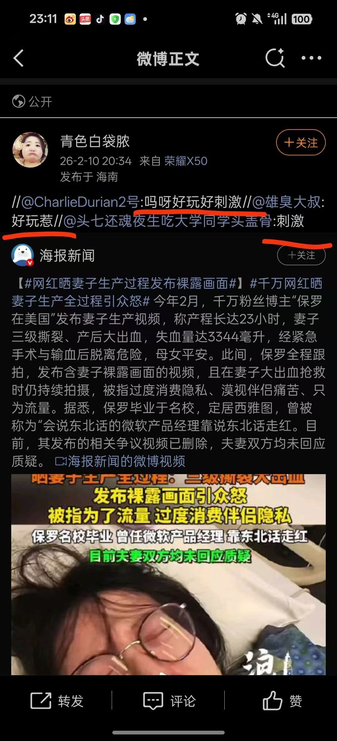 千万粉丝网红晒妻子生产过程遭质疑