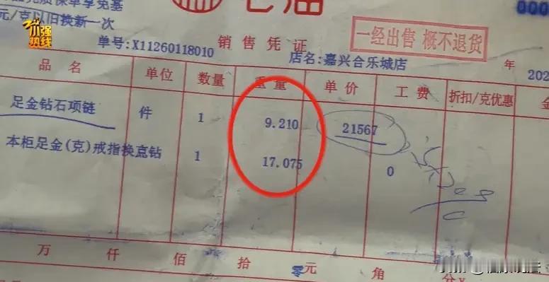 浙江嘉兴,女子拿17克旧黄金想换个款式,金店销售推荐她1克换1克,女子换了一金项