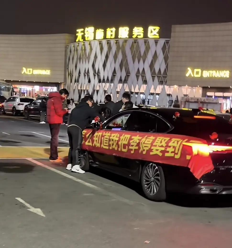 来自陌生人的祝福,才是最惊喜最意外的。 本以为是一场孤独的远嫁,却没想到在高速上收获满满的祝福。 还在看李婷为何突然就出了名,在上海到河南的高速上,一辆婚车在疾驰,而在车上挂着一副横幅,横幅上写着“你怎么知道我把李婷娶到了”。看起来了很吸引人。 虽然一两婚车,孤独的奔跑在高速上,但是他们并不孤单,在高速上不少莫名的车主,纷纷加入了进来,默默的陪伴了100公里,后续有车主将视频发布到网上,我们才知道,这段本是孤独的路并不孤独,全网也是知道你是怎么娶到的李婷。 眼瞅着车子越来越多,新郎和新娘特地进入了服务区,给众多的车主发喜糖。 远嫁对于任何一个女生来说都不容易,也相信在这条路上,这对新人收获了更多的祝福。