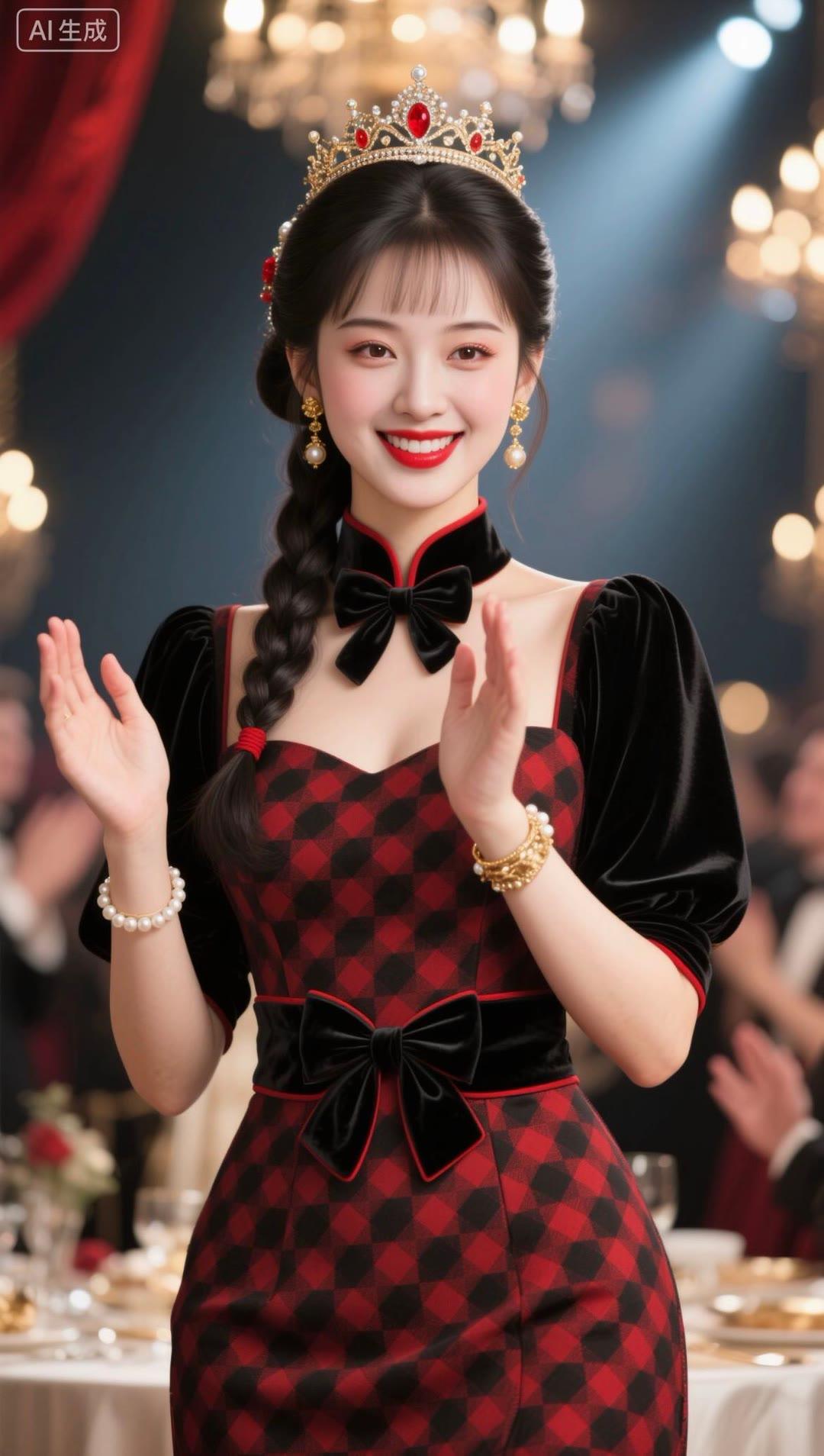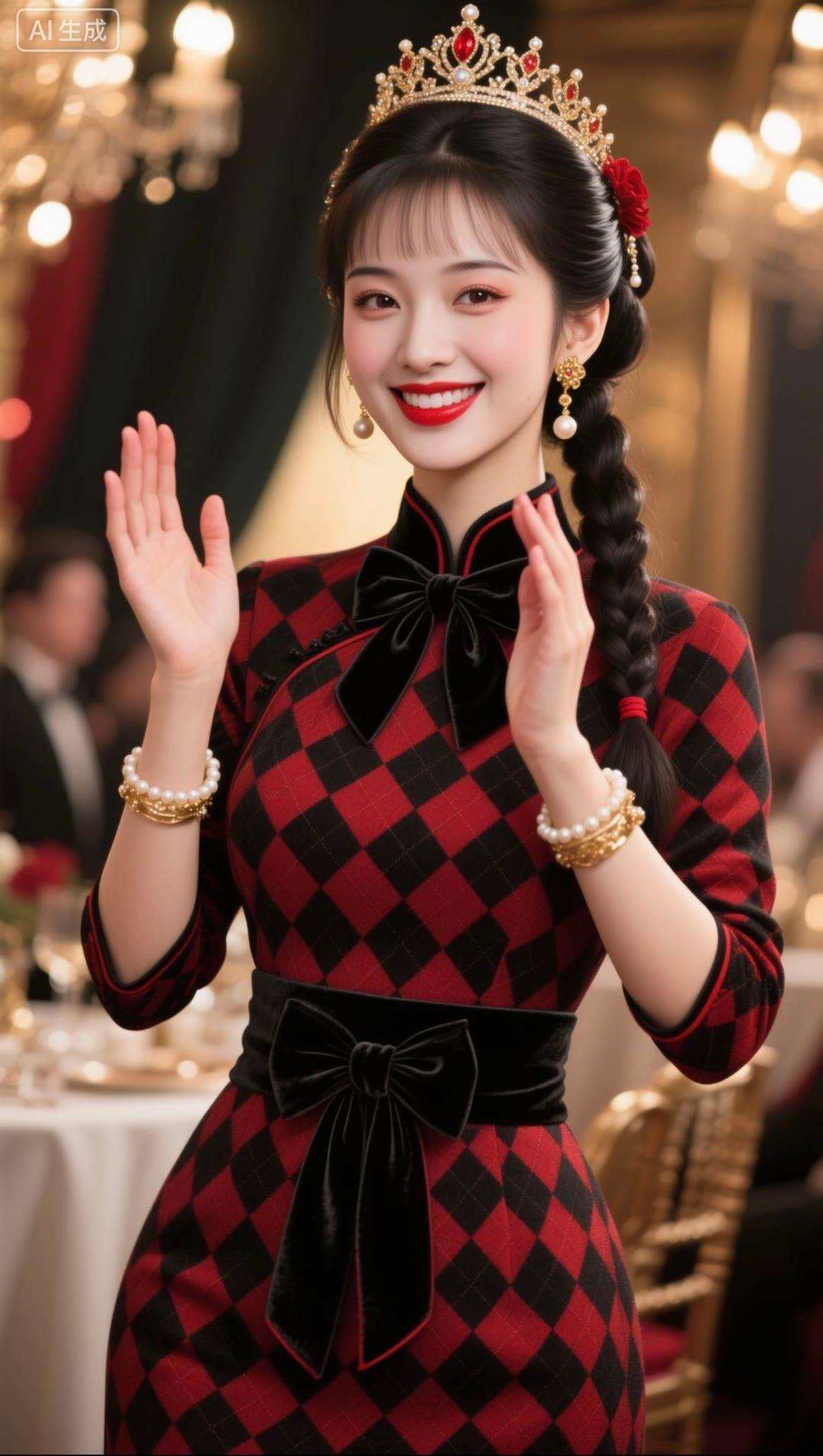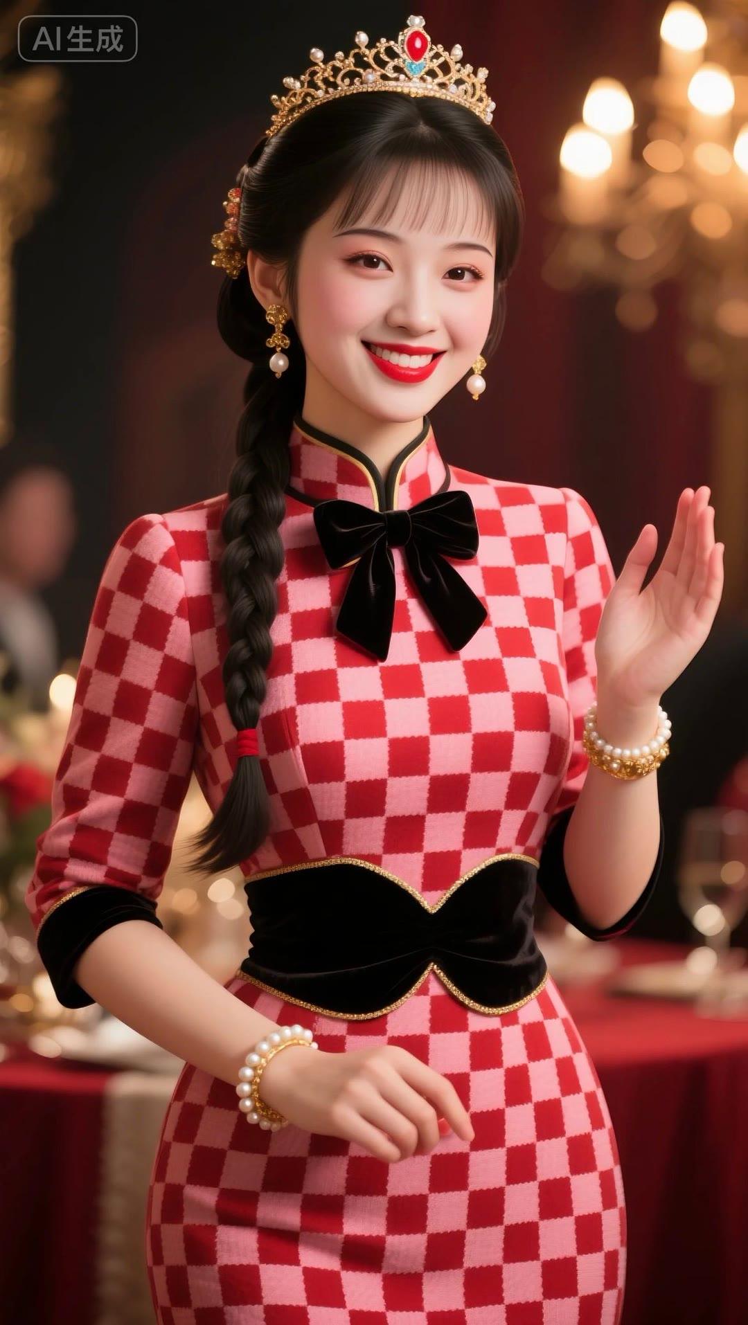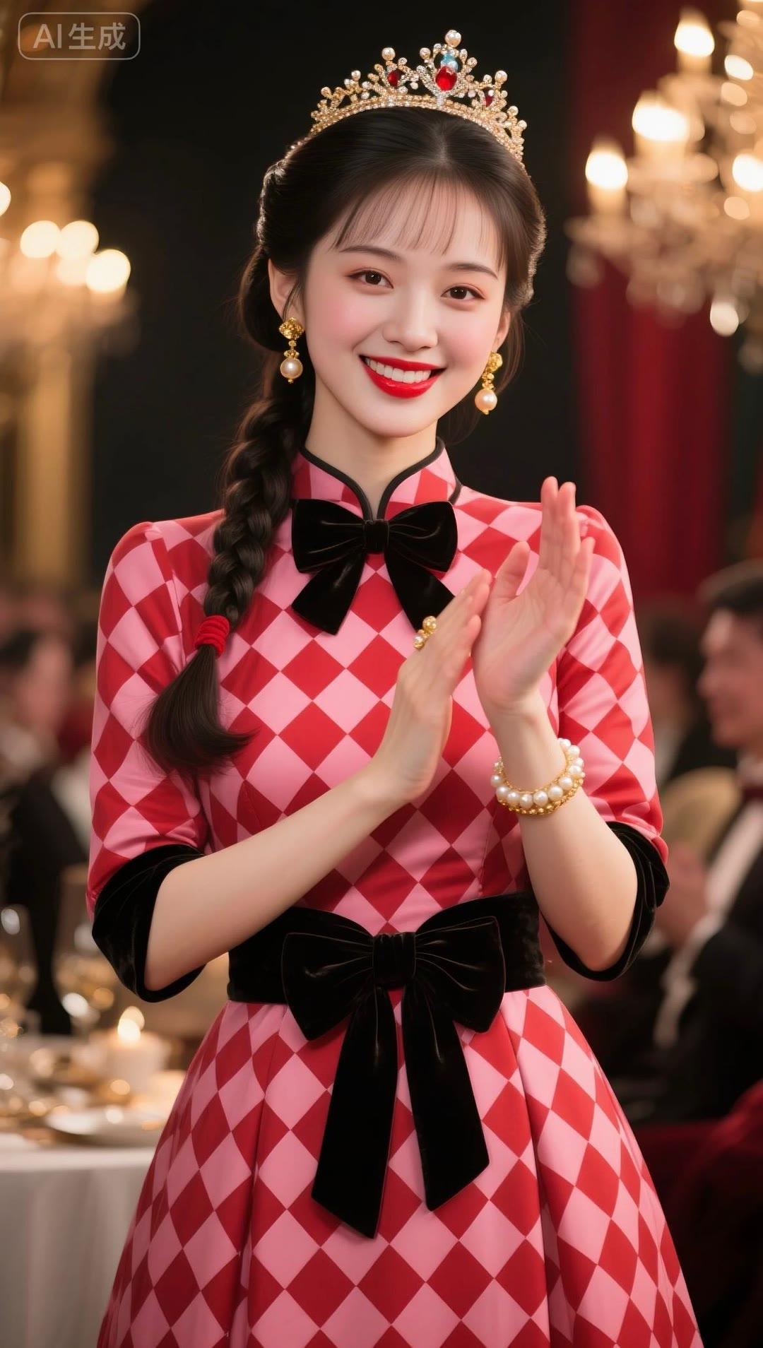 红衣美人笑,玉冠映光辉。