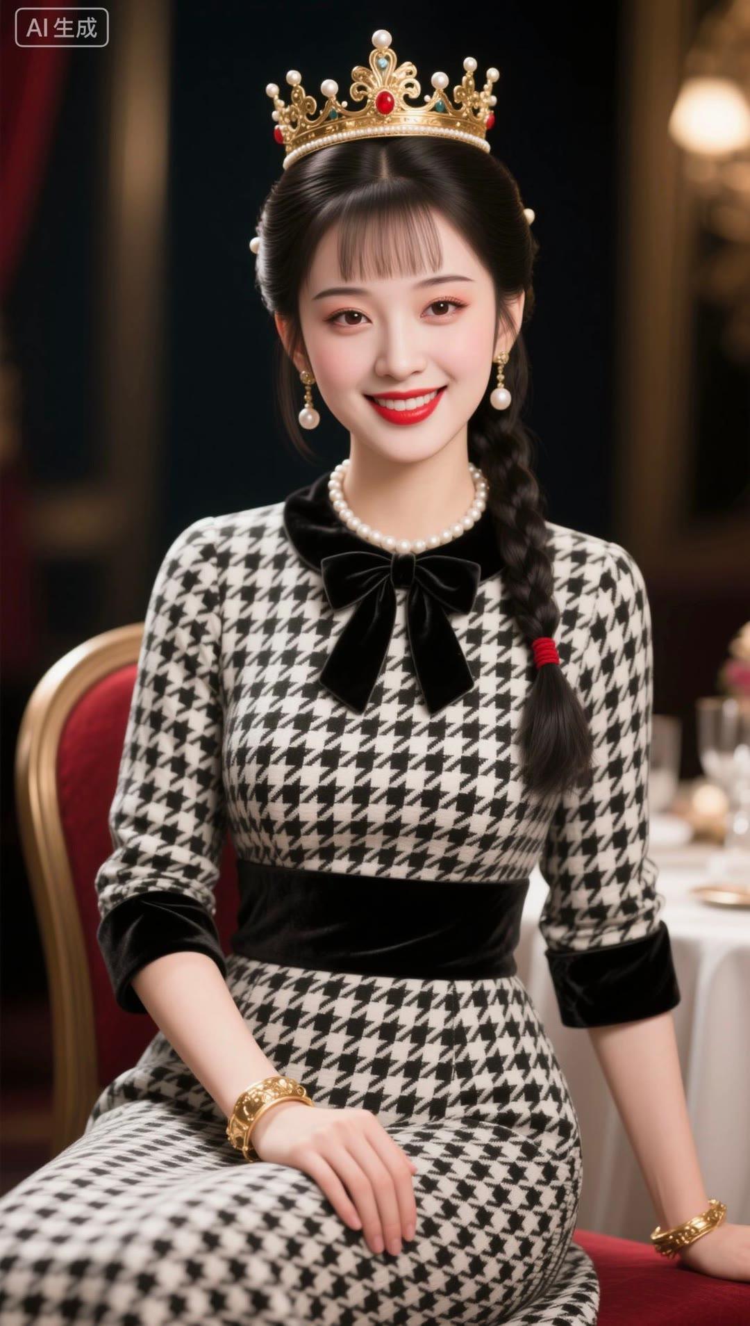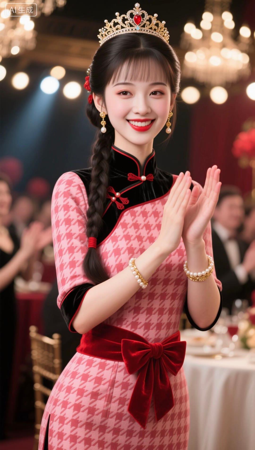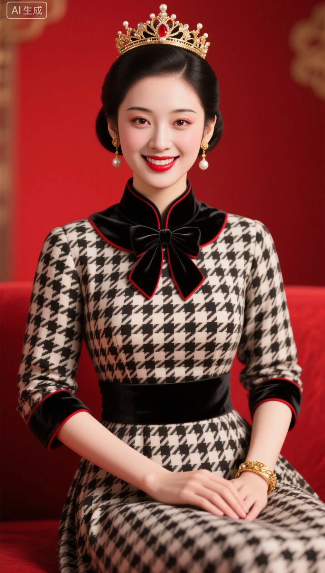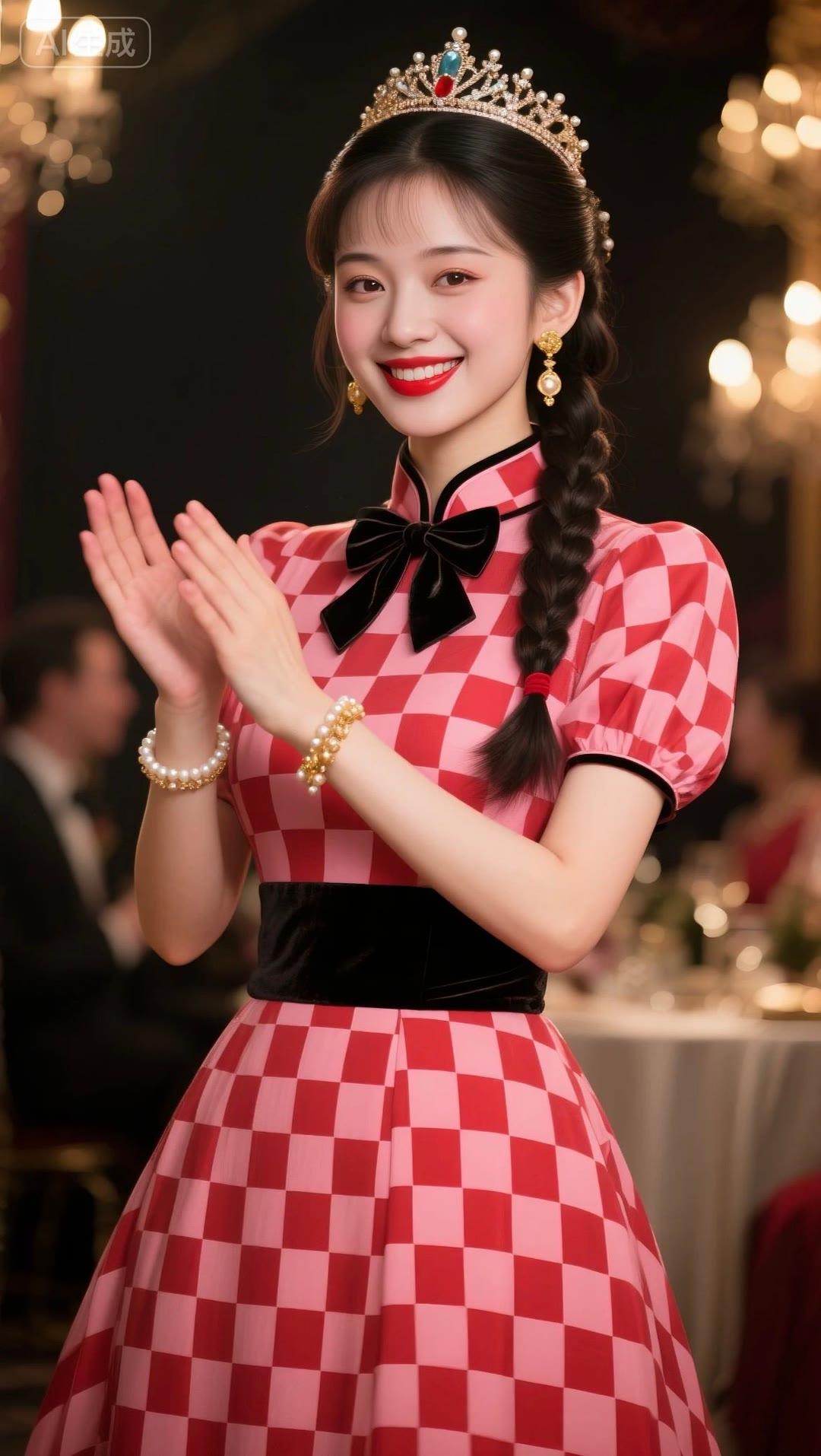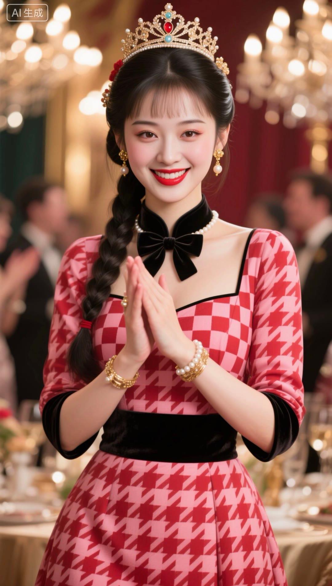 红衣美人笑,玉冠映光辉。