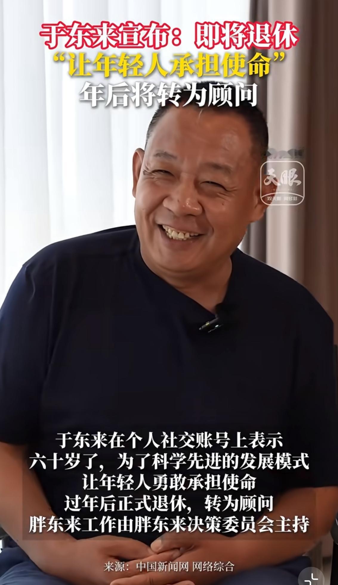 于东来选择退休,很可能是受了贾国龙的影响。 大家还记得西贝预制菜风波的时候吗? 当时于东来是为数不多的站出来力挺西贝的企业家。 他说:“感谢西贝,让我找到相对放心可口吃饭的地方。” 但他马上遭到口诛笔伐,将账号私密。 他差点就犯错误了。 其实不能说他犯错误,而是在互联网时代,中国人善于造神,更善于毁神。 胖东来的呼声那么大,是非常容易出问题的。只要你有一点点差错,就会被无限放大。 于东来在西贝事件中,应该已经看到这个苗头了。所以他选择退居二位,让他的团队去冲锋陷阵,他是聪明的,有智慧的。 任何一个企业只押在一个人身上,是非常危险的。 至于他当顾问后,胖东来会变成什么样子,我们就拭目以待吧!
