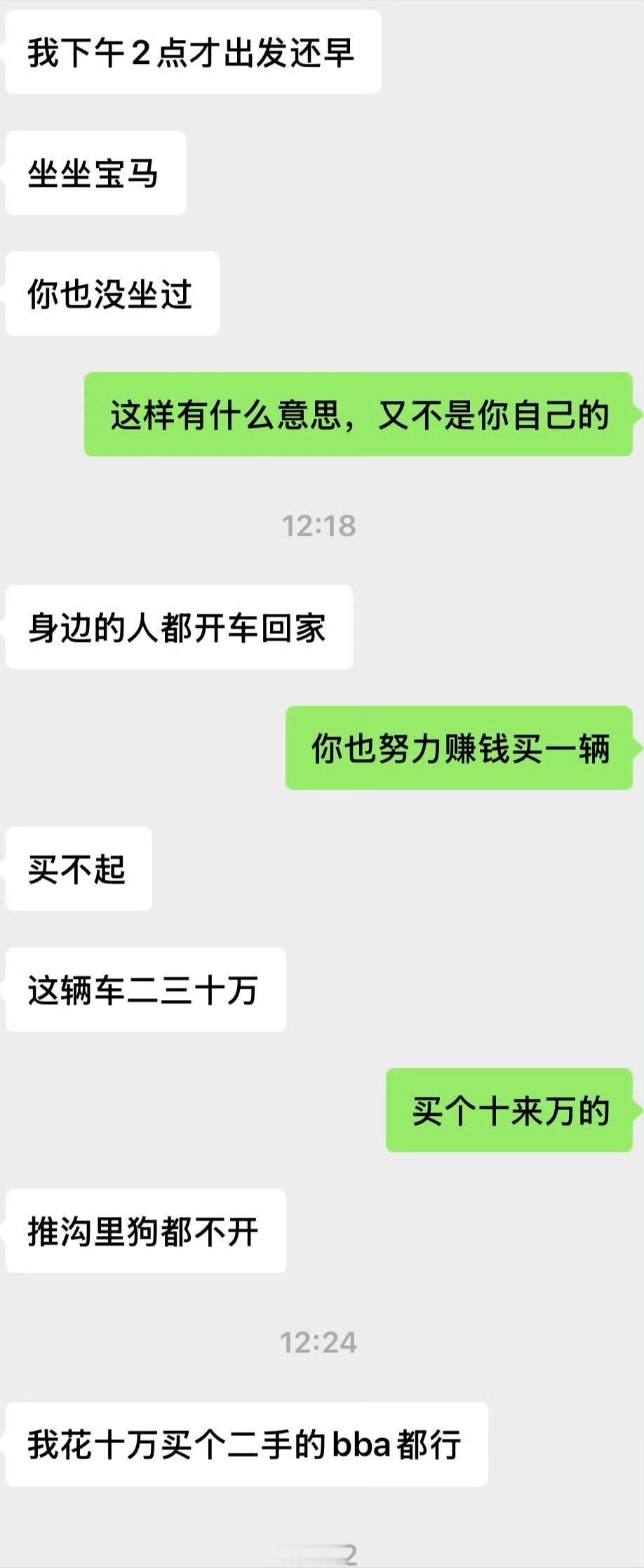 女子吐槽,男朋友过年回家偏要花几千租台宝马回家,可兜里就2万块救命钱。男朋友说,国产车没面子,要租就租BBA豪车,一天300块,租十天半个月。女朋友抱怨,这一下就要去掉万把块,日子还过不过。男朋友说,回家就是要有面子,让大家看得起。并且每年都要换不同的车,让大家看到他的实力。女朋友说,婚不结了吗?不要攒钱过日子吗?男朋友说:结婚不着急。穷人买宝马 宝马车定金