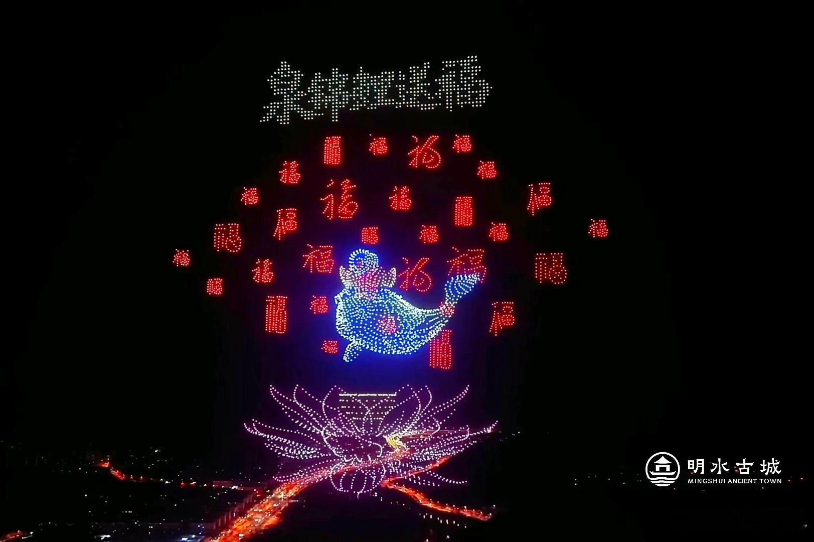 10000架无人机即将点亮济南夜空感受下济南无人机的夜泉在济南过年泉锦鲤送福天下
