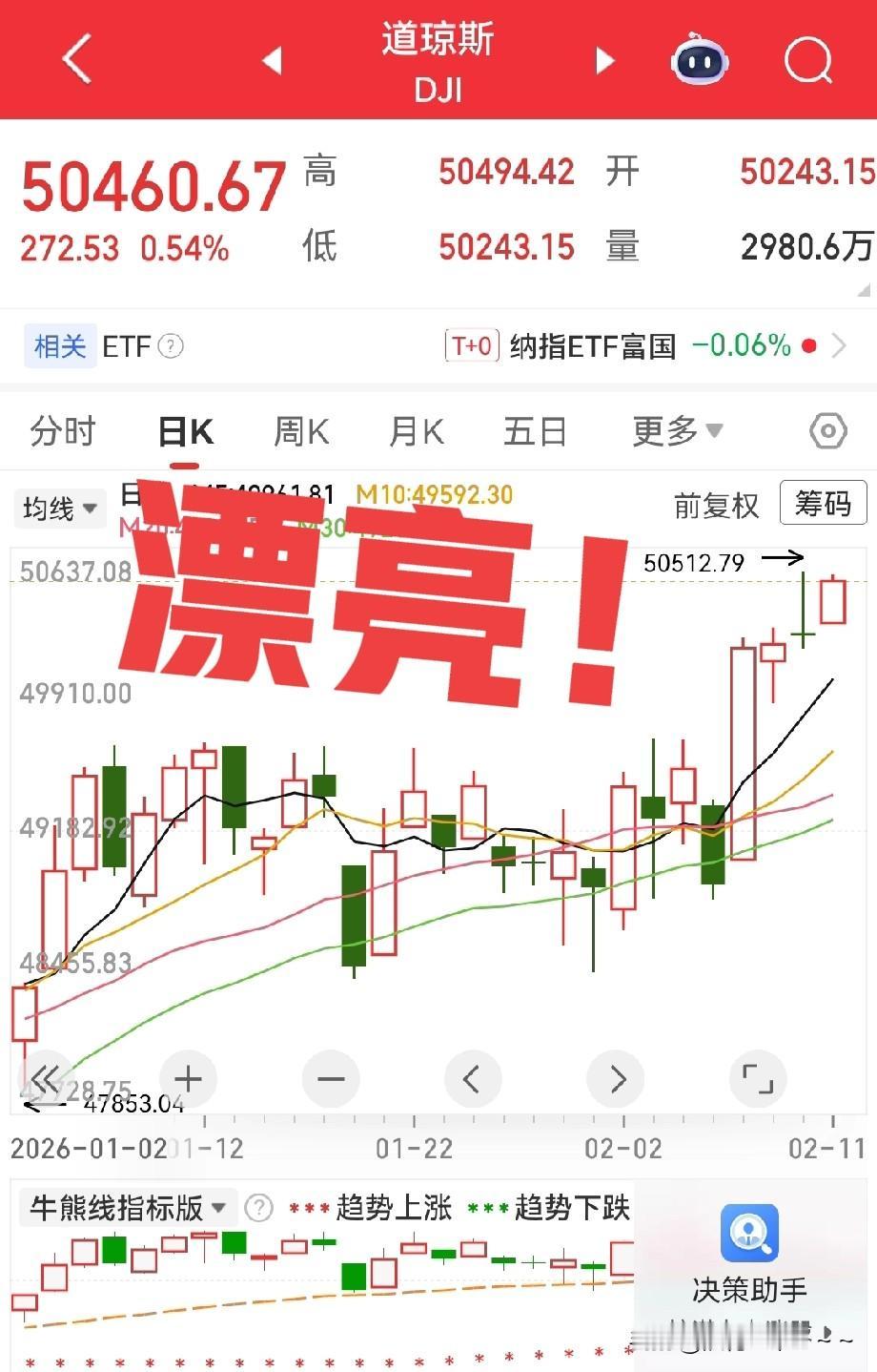 夜已深!都钻被窝睡觉了吗? 美股开盘了,高开!漂亮!你先看看道琼斯这日线走势多么漂亮!昨天收阴线十字星,自行调整一天,今天直接高开,沿着5日线往上走。 而且今天晚上,美股是三大指数高开,科技股普涨。 同时,我们回想一下今天A股的走势,也算是调整了一天,那么看看今天晚上美股的走势,不出意外的话收阳了! 明天A股上证指数八连阳,我敢打保证90%的概率。再加上今天晚上的利好,上面重点强调了人工智能,特别是人工智能的落地应用要加快。所以,明天科技股可能有戏。 以上是个人观点啊,欢迎大家发表看法,还有两个交易日,可就要春节放假了,祝大家明天后天能领到大红包,开心快乐一下。来一波点赞,晚安!发财![玫瑰][捂脸]