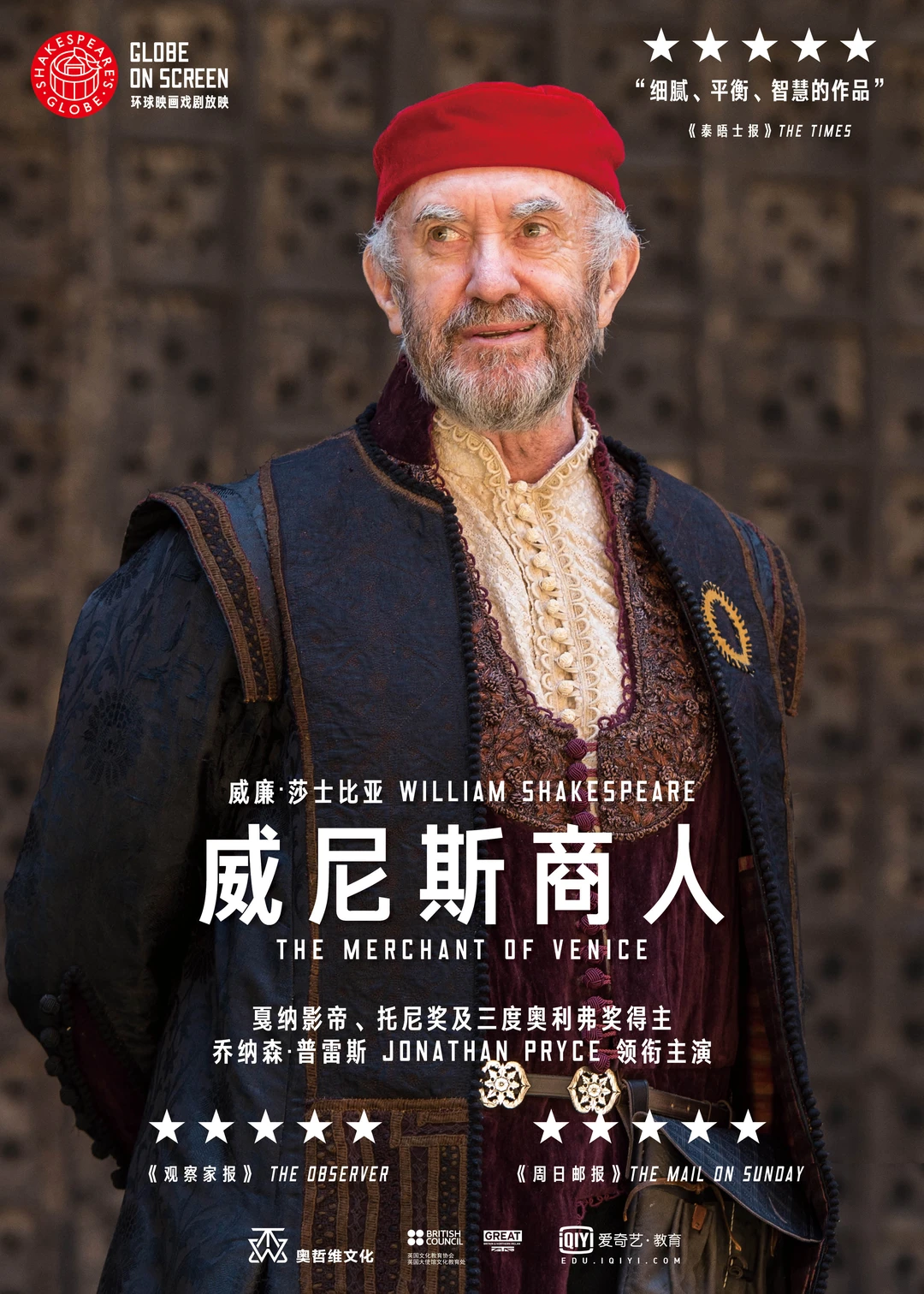 《权力的游戏》中的“大麻雀”Jonathan Pryce饰演夏洛克。这部莎翁经典跳出了简单的善恶二元对立,深刻探讨了种族、契约与人性的复杂纠葛。