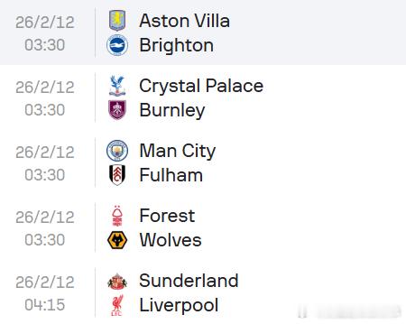 03:30 曼城vs富勒姆 04:15 桑德兰vs利物浦