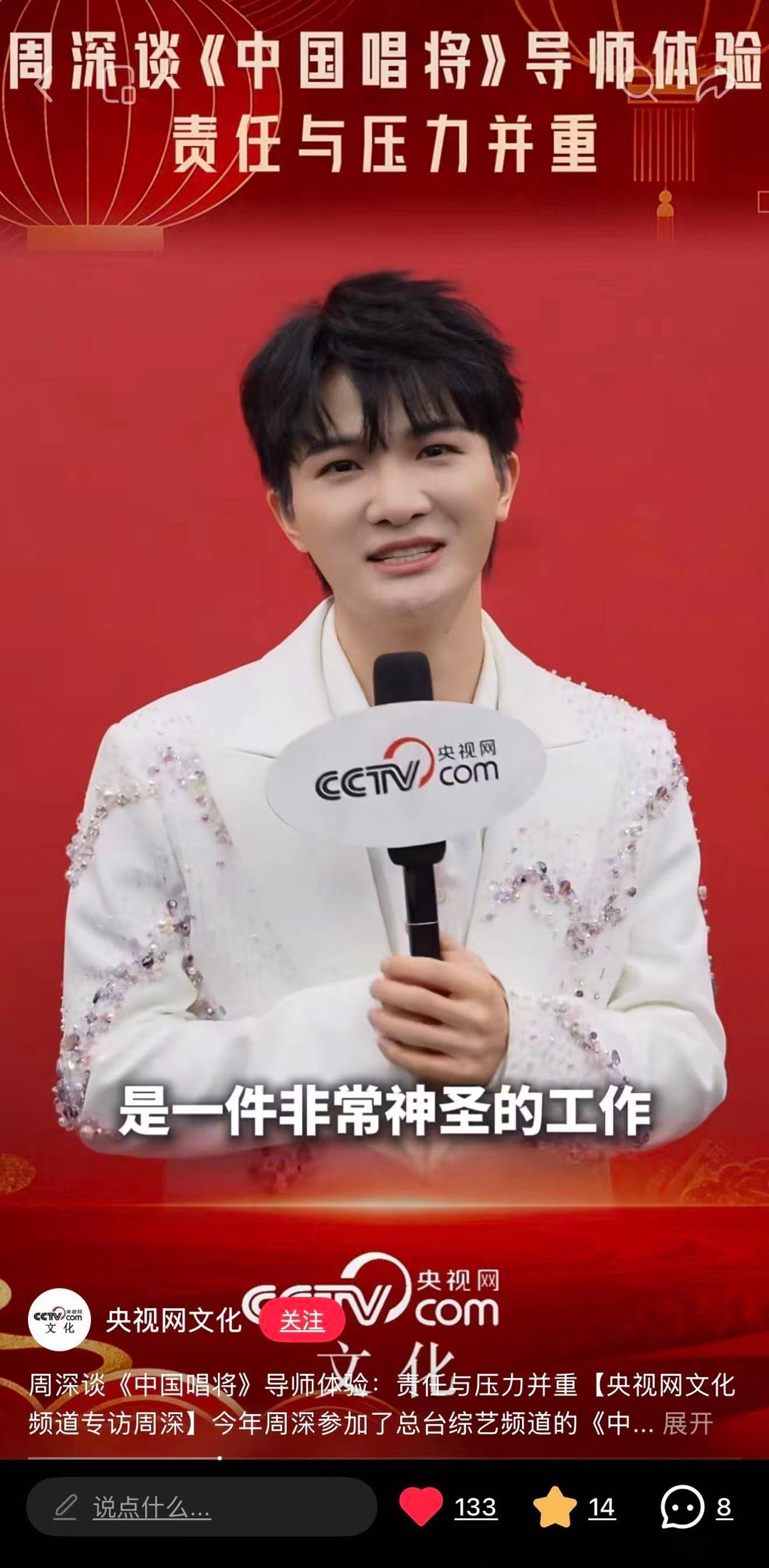 周深📣2.12一些物料📣【央视新闻】【央视网文化】多平台更新了深深相关