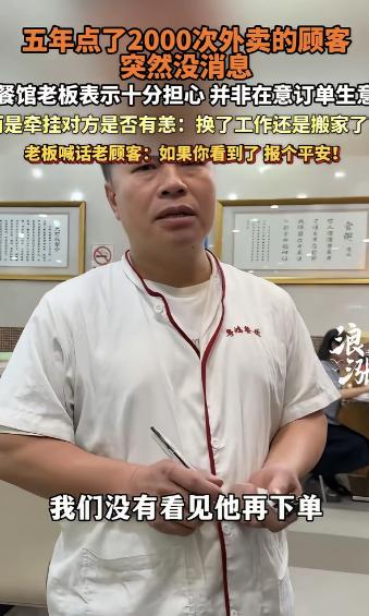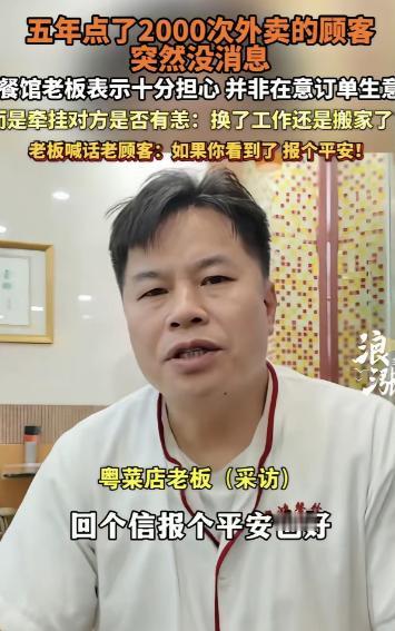 广东佛山,一男子开了家粤菜馆,有个顾客5年点了2000次外卖,突然1年多都没下单,男子很是牵肠挂肚,他不是想挣这个顾客的钱,而是担心对方的安危,不知道是换工作了还是搬家了,男子喊话:如果你看到了,报个平安! 据了解这家粤菜馆开了有些年头,老板是个实在人,做菜用料实在、味道地道,靠街坊邻里的口碑撑着。 而店里有个老顾客,没露过面,却比很多熟客都让老板上心——整整5年时间,这个人在店里点了差不多2000次外卖,算下来平均每天都要吃一顿他们家的。 而且这人的口味特别固定,要么是白切鸡、豉汁排骨、虾饺这些经典粤式点心,要么就是清淡的粥粉面,从来不吃辣,有时候会备注少盐少辣。 时间长了,后厨不用看备注,只要看到那个熟悉的地址跳出来,手上就知道该怎么做,老板也总习惯性地多给两块排骨,或者悄悄添一盅热汤,不收额外的钱,就觉得像是给一个远房亲戚做饭。 就这样一来二去,5年过去了,这份外卖订单成了老板和这个陌生顾客之间的默契,哪怕从没通过话、没见过面,老板心里早就把对方当成了熟人。 然而突然有一天这份天天报到的订单,毫无征兆地停了。 刚开始老板没在意,想着可能是对方出远门、换口味,或者临时不想吃外卖了,过几天就会回来下单。 可一周过去了,一个月过去了,几个月过去了,后台再也没出现过那个熟悉的地址和订单。 老板心里慢慢慌了,他不是心疼少了一个大客户,也不是惦记那点外卖钱,就是实打实的担心。 他总琢磨,这人是不是搬家了,搬到了外卖送不到的地方? 还是换工作了,离开了佛山这座城市?又或者,是不是身体不舒服,没法点外卖了? 有时候他还会反省,是不是自己哪次菜没做好,让对方不满意了,才再也不来下单。 日子一天天过,老板的担心越来越重,吃不好睡不香,最后实在忍不住,拍了一段视频隔空喊话。 视频里他说得很朴实,没有华丽的话,就只是说,那位5年点了2000次外卖的朋友,不管你现在在哪里,不管发生了什么事,只要看到这条消息,给我报个平安就行,不用再下单,不用送感谢,人没事就好,店里还特意给你留了位置,想请你吃顿热乎饭。 这段视频发出去后,很多人都被暖到了,大家都说,这年头做生意,大多是你买我卖的交易,没想到还有老板把顾客的安危看得比赚钱还重。 有人猜测,这位顾客说不定是真的搬家或者换工作了,忙起来忘了跟老板说一声;也有人说,可能是成家了,家里有人做饭,就不用再天天点外卖;还有人担心,会不会是遇到了什么难处,没法及时回应。 其实仔细想想,这事儿看着普通,却特别戳人,我们身边总有这样的陌生缘分,可能是天天给你送早餐、记住你口味的老板,可能是准时送餐、总多等你几分钟的外卖员,他们和我们没有血缘关系,却因为日复一日的陪伴,生出了最朴素的牵挂。 城市很大,很多人独居打拼,白天忙工作,晚上靠一顿外卖打发日子,看似孤独,却总有这样的小温暖藏在烟火气里。 这位佛山老板的牵挂,不是刻意炒作,也不是过度矫情,就是五年相处下来,最真实的在意。 不知道那位失联的老顾客,能不能看到老板的喊话,只希望他一切安好,哪怕只是简单回复一句“我很好”,也能让这个实在的佛山老板,放下心里的石头。 对此您有什么不同的看法,可以在评论区留言讨论!!!