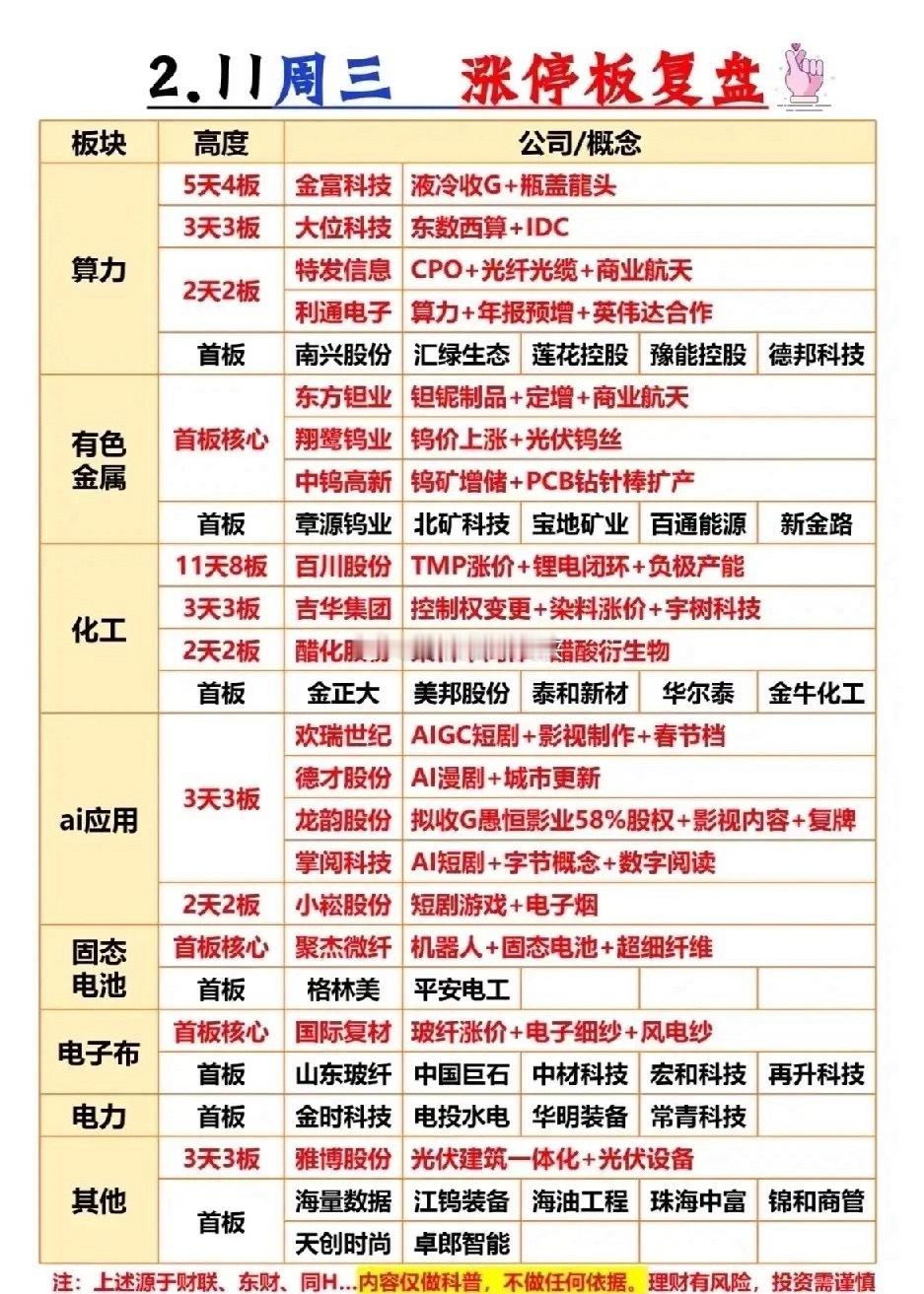 2月11日涨停梯队梳理!