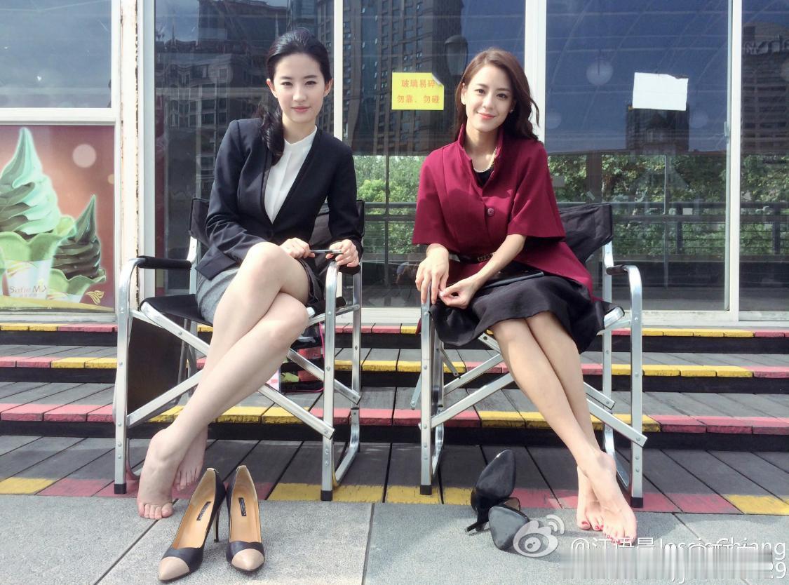 刘亦菲和江语晨在片场脱鞋放松,私下状态也太真实可爱了~