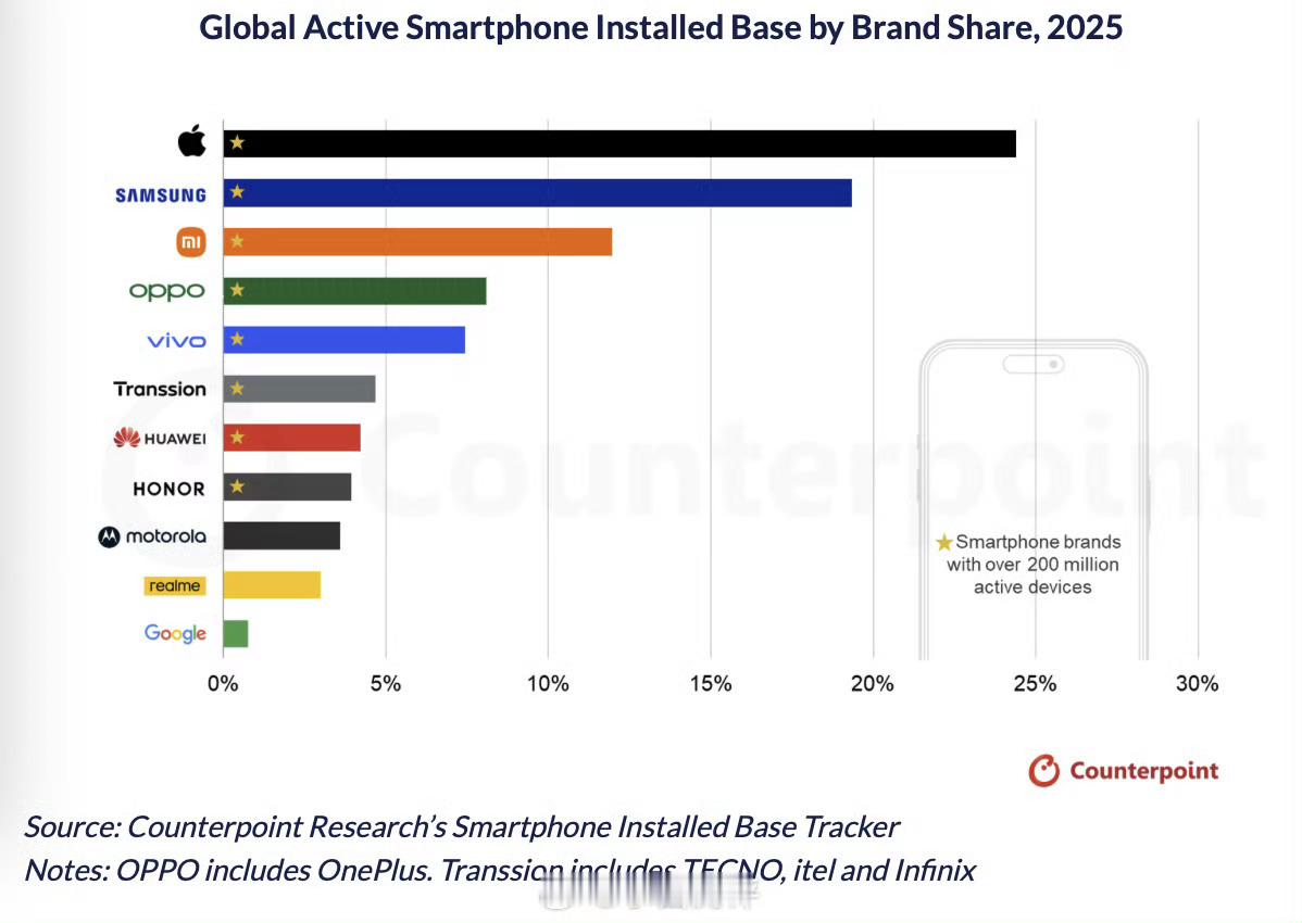 全球每4部手机就有1部iPhone还得是苹果,遥遥领先