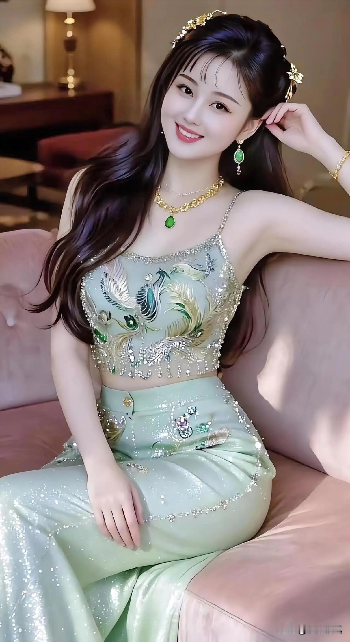 优雅孔雀绿礼服,闪耀的绿宝石项链,尽显东方古典美!🌿✨