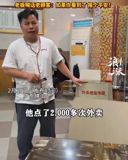 暖心了,广东佛山一粤菜馆老板,有位五年累计在他店铺下单超2000次的外卖老顾客,可近一年来,这位老顾客却突然没在他的店铺下单了。最近,老板就特别担心这位老顾客,并全网喊话老顾客盼其能报个平安! 据老板描述,五年内,这老顾客就累计在他店铺点外卖有两千多次,但在过去一年里,这位顾客突然没了消息,也没有再下过一单,老板也不知顾客是搬家了,还是因为工作的原因。 最近年关将至,老板就特别牵挂这位从未见过面的顾客,为了寻找他,老板便发视频全网寻人,并在他的店内特设了一个外卖老友专座,只想亲眼见见这位老友,希望他能报个平安。 不得不说,这绝对是一个忠实的老顾客了,5年下单超2000单,平均一年就得下单400单,基本每天都要下一次单,这得多爱吃老板家的东西啊!所以五年里,这位顾客也是暖了老板的心,而老板的全网寻他更是让人暖心。 正如网友所说,人还是有感情的,虽然他们从未见过面,但这五年的接触却产生了一份实打实的情感。真好!一个陌生人的关心和牵挂让人暖心了,也希望这位老顾客看到后,主动与老板联系一下报个平安吧!
