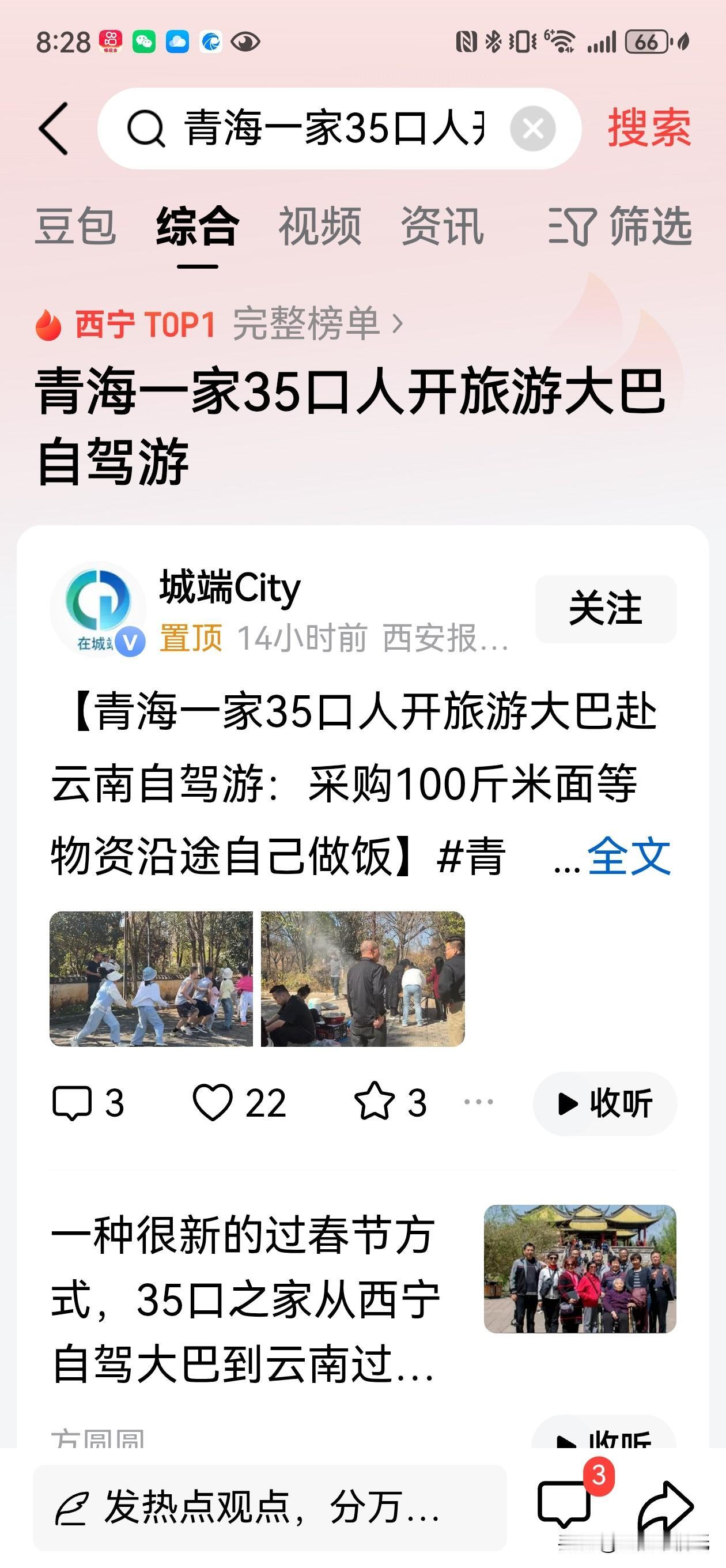 35口人挤满大巴!青海一家春节外出自驾游,17个娃7个老人,网友:羡慕又担心。 青海西宁,赵家35口人,租了辆大巴,从2月7日起一路南下。17个孩子,7位老人,最大的75岁,最小的才6岁。车上有司机、导游、厨师、财务,连维持秩序的都有。白天赶路,停车做饭,孩子在路边跑跳,老人在车里打盹。晚上扎营,锅碗瓢盆一摆,就是一顿团圆饭。 这家人2月7日从西宁出发,途经四川广元、攀枝花,云南丽江、大理,目前在昆明短暂停留,接下来前往西双版纳(住4晚),回程将去贵州黄果树瀑布、重庆洪崖洞。预计2月20日(正月初四)回到西宁,全程14天。 有人说这是“移动的家族春晚”,也有人看得揪心:35个人,14天,吃喝拉撒全在路上,新鲜劲一过,疲惫、摩擦、安全——哪个不是坎? 赵雄开了近十年旅游大巴,此次用公司协调的大巴载家人,称“温暖又自由”。赵霞则表示,平时难与家人长时间相处,此行弥补了缺失的陪伴。视频中可见家人在车上唱歌,停车时做饭、孩子玩游戏。 这次方向盘上坐的是自家老父亲。两人轮换,每天不超300公里,为的是让75岁的大伯别太累。年轻人AA每人2000元,老人免费,缺口由赵霞弟弟和堂哥补了两万多。 账算得清,情算不清。这趟旅程没什么豪华酒店,真正奢侈的,是“整整14天,全家人在一起”。车上唱歌跑调没人嫌弃,做饭咸了淡了也是一桌菜。 春节的意义,未必是走多远。而是挤在一辆车里,吵着、笑着,往同一个方向开。 祝赵家一路平安,这趟车,开进了无数人心里。