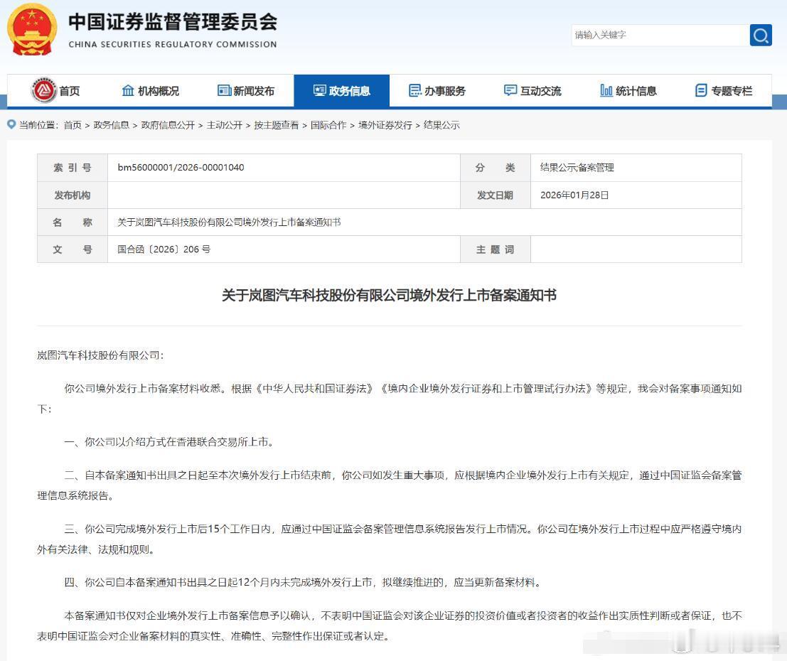 最新消息:岚图汽车港股上市已经取得香港联交所的原则性同意,标志着岚图已完成港股上市的全部前置监管审批流程,上市确定性全面落地!只用了四个月时间,岚图就完成了全部的前置合规准备,或将成为“央企新势力第一股”。这也意味着,岚图将要从中国市场走向全球市场,上市后获得资本市场的资金输入,不仅将加快全球化布局,冲击高端也更有底气!岚图将于港股上市岚图汽车港股上市获批 岚图汽车[超话]