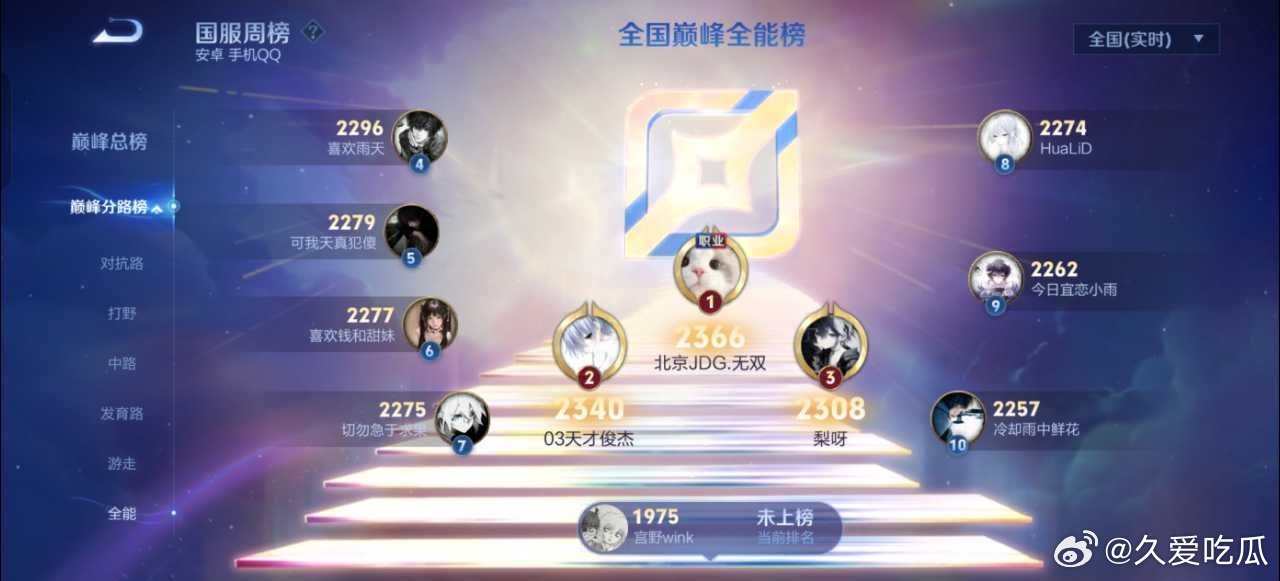 瓜友速报无双全能榜第一,蓝桉总榜第一