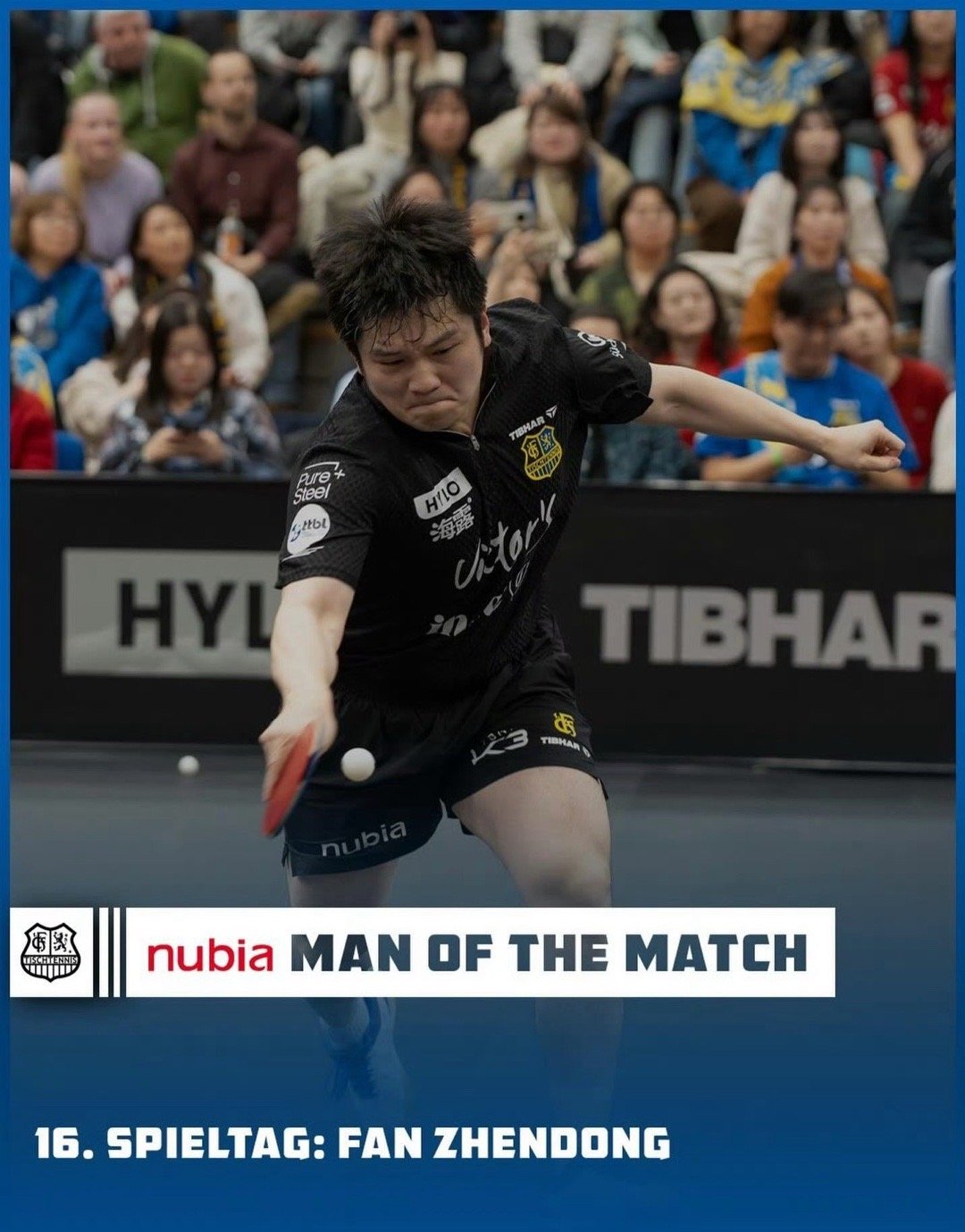樊振东当选德甲第16轮最佳TTBL:樊振东当选德甲联赛第十六轮最佳球员!球迷们已经投票选出:樊振东以 67% 的得票率,当选 TTBL第16轮对阵格瑞扎比赛的全场最佳球员!
