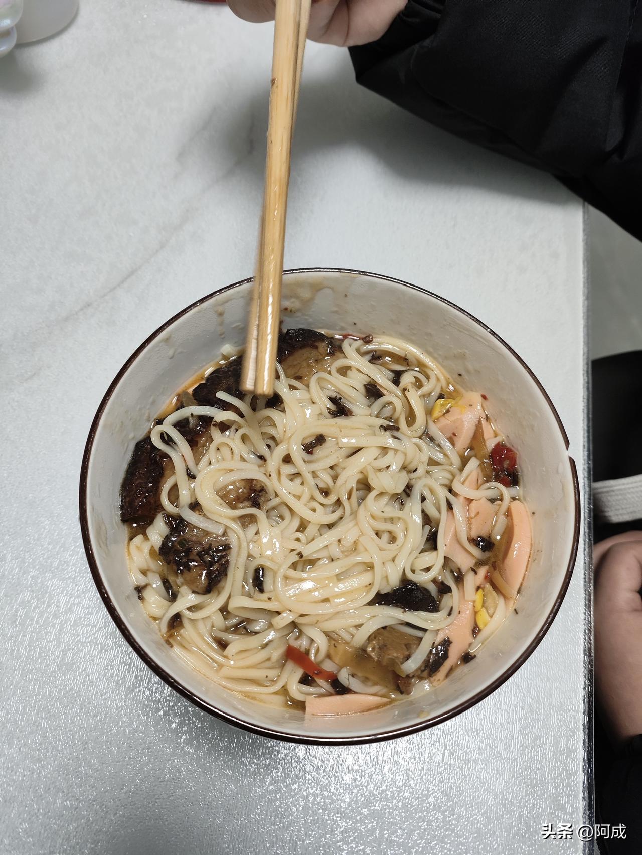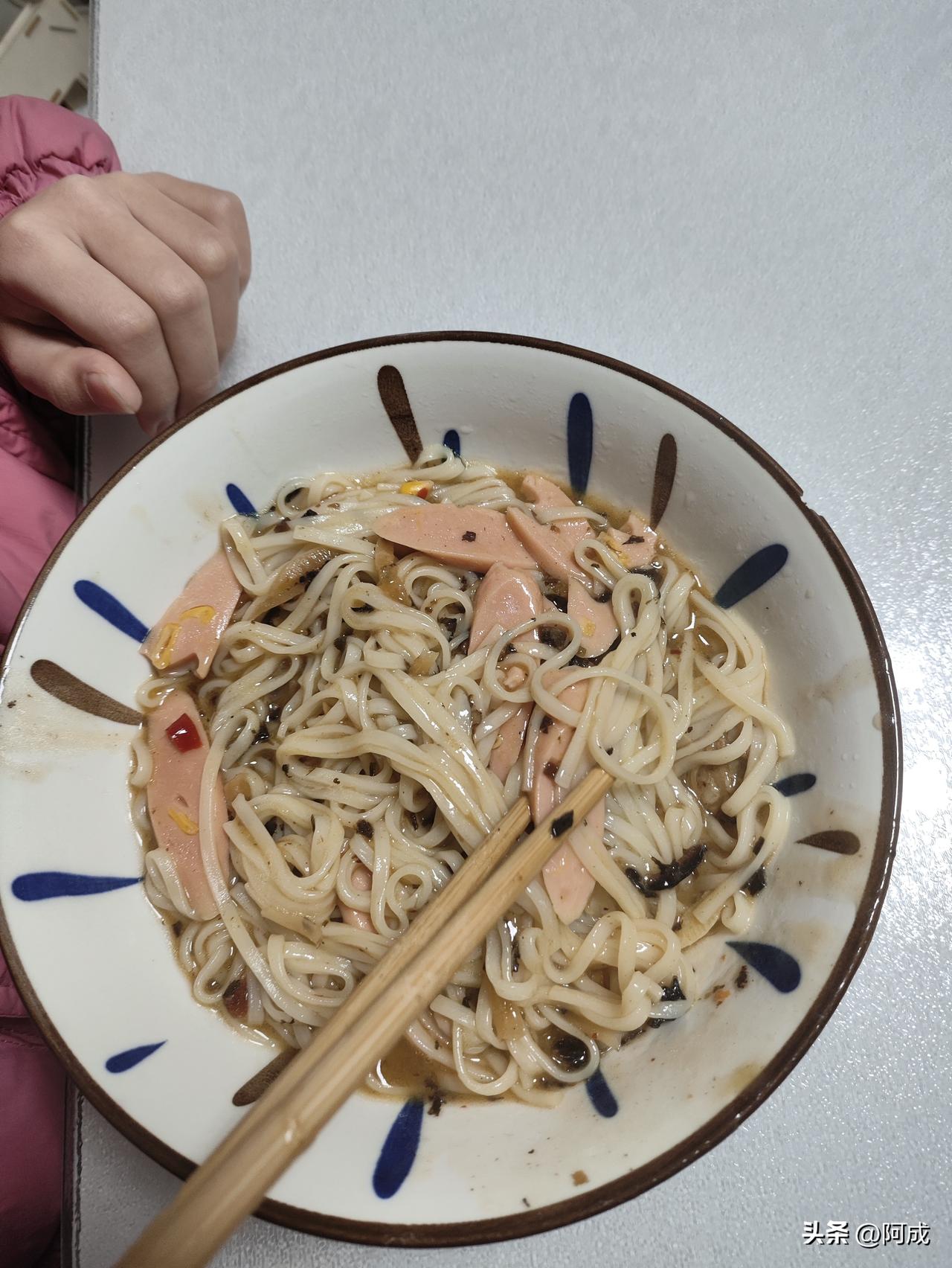 今天天冷,俩娃一觉睡到九点才慢悠悠爬起来,赖床赖得理直气壮。 我也好久没下厨了,难得早起一次,打算给他们露一手煮早餐。孩子们点名要吃前几天买的玉米火腿肠,这点小要求必须满足。 趁他们穿衣服、刷牙洗脸的功夫,我麻利地把面煮好,三碗加了玉米火腿、梅菜扣肉的汤面就上桌了。 女儿尝了一口,认真点评:“爸爸,你做的拌面样子不好看,味道还可以。” 儿子也跟着点头:“味道还行。” 我当场哭笑不得——我明明煮的是汤面啊!好吧,我承认面放多了、水少了,硬生生煮成了拌面,谁让我太久没动手呢。 虽然卖相一般,但味道能过关,我已经挺满足了。 结果女儿补了一句:“爸爸,你拍个照发给妈妈,她肯定说我们吃的是猪食。” 这小棉袄也太漏风了吧,还想不想下次再吃老父亲做的早餐了!