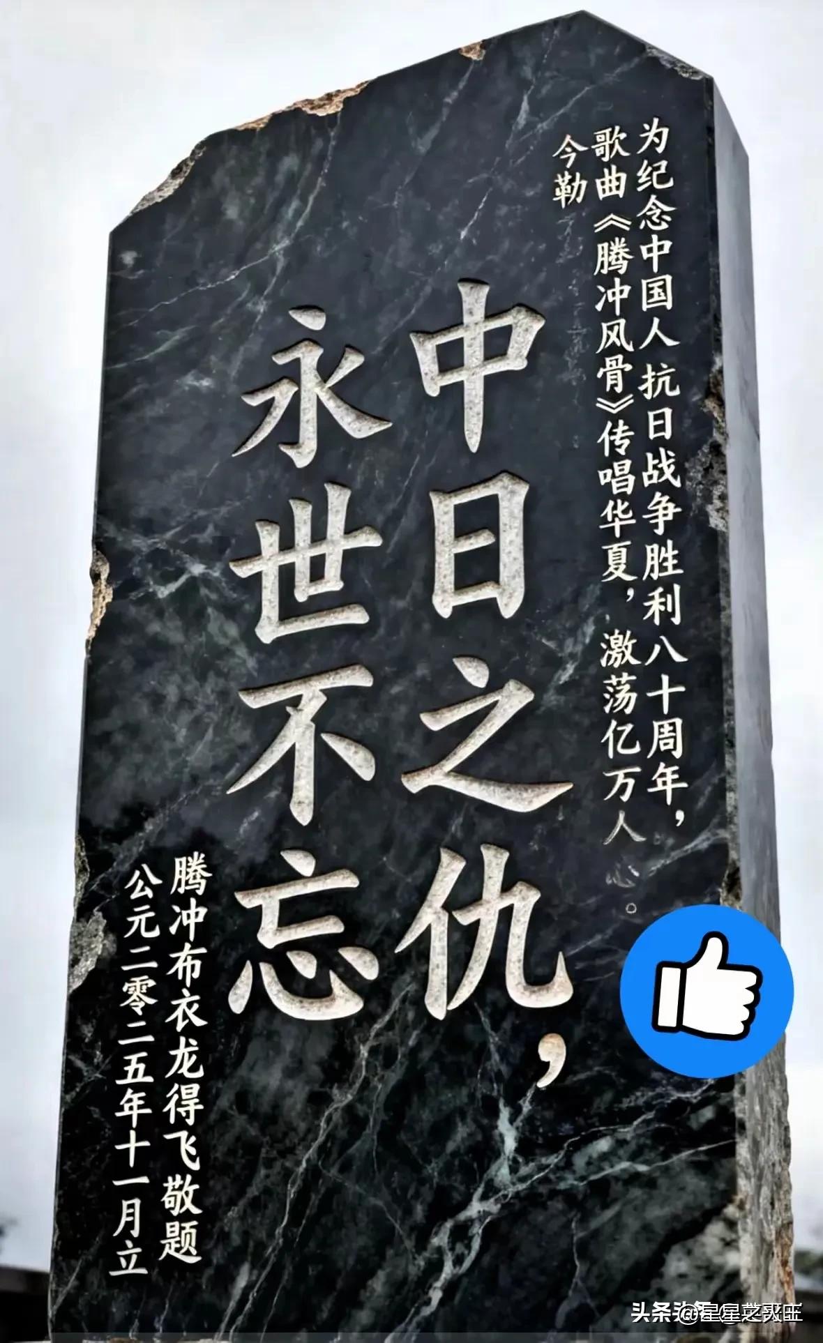 这块碑,才是刻在骨血里的硬气,看得人热血翻涌。 “中日之仇,永世不忘。” 满世界都在讲一衣带水、以和为贵, 可只有腾冲界头玄天宫前,立着这块敢直面**“仇”**字的碑。 它不是煽动,不是偏激, 是无数先烈用命换来的警醒,是刻在山河里的血泪记忆。 就这八个字,动了谁的神经? 发张照片都要被人恶意举报, 我倒想问问:你们到底站在哪一边? 是觉得历史太扎眼,还是真相让你们心虚? 碑就立在那里, 是腾冲的风骨,是中国人的骨气。 有本事去腾冲,当着父老乡亲的面把它推倒? 借你们一百个胆子,你们也不敢。 有些痛,不能忘; 有些字,必须立; 有些骨气,绝不能丢。 这才是真正的中国魂,硬得让人热泪盈眶。