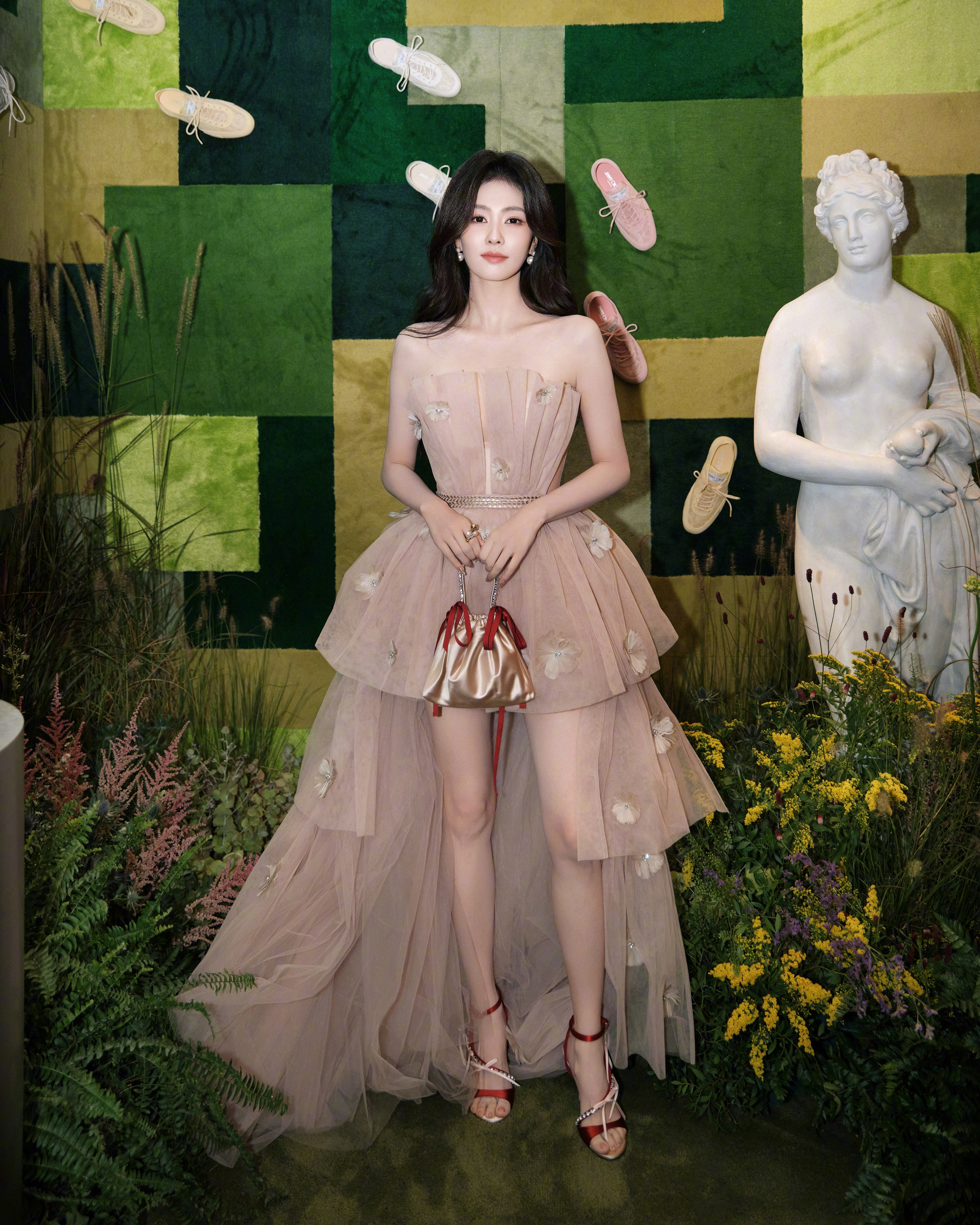 白鹿 身姿窈窕,一袭纱裙更衬得曲线玲珑。那双大长腿又细又直,在裙摆的衬托下愈发吸睛,行走间尽是优雅与活力。