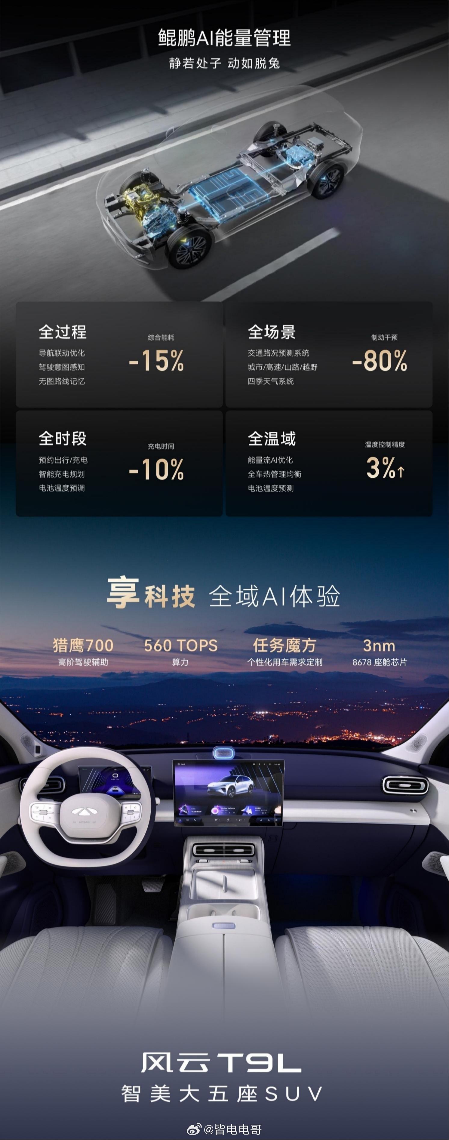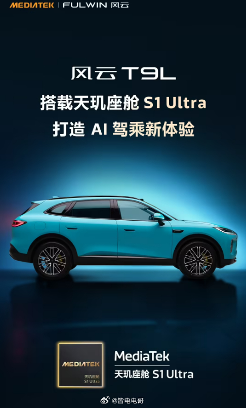 联发科微博官宣:奇瑞风云 T9L 的天玑座舱 S1 Ultra 算力达到54 TOPS NPU AI只能座舱是越来越卷了