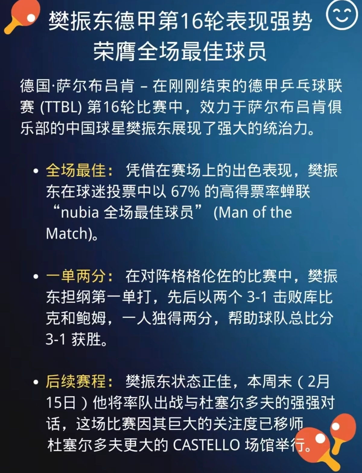 樊振东在获“全场最佳球员”能挑战我困意的唯有樊振东赛场上的激情挥拍。