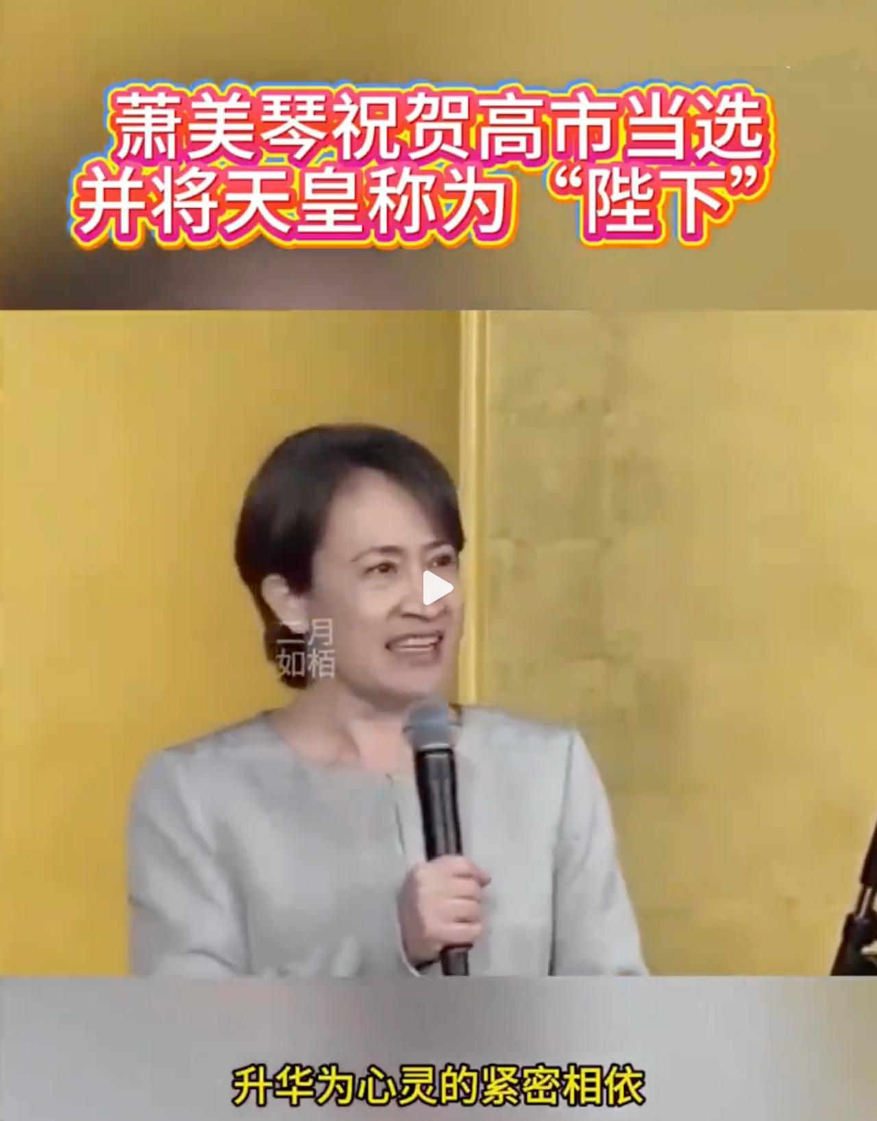 奴性不改!萧美琴祝贺高市当选,并将天皇称为“陛下”! 蛙岛日杂看着就恶心,真是奴颜婢膝到极致了!就冲这尿性,留岛不留人吧。 丑人多作怪,不是没有道理的。