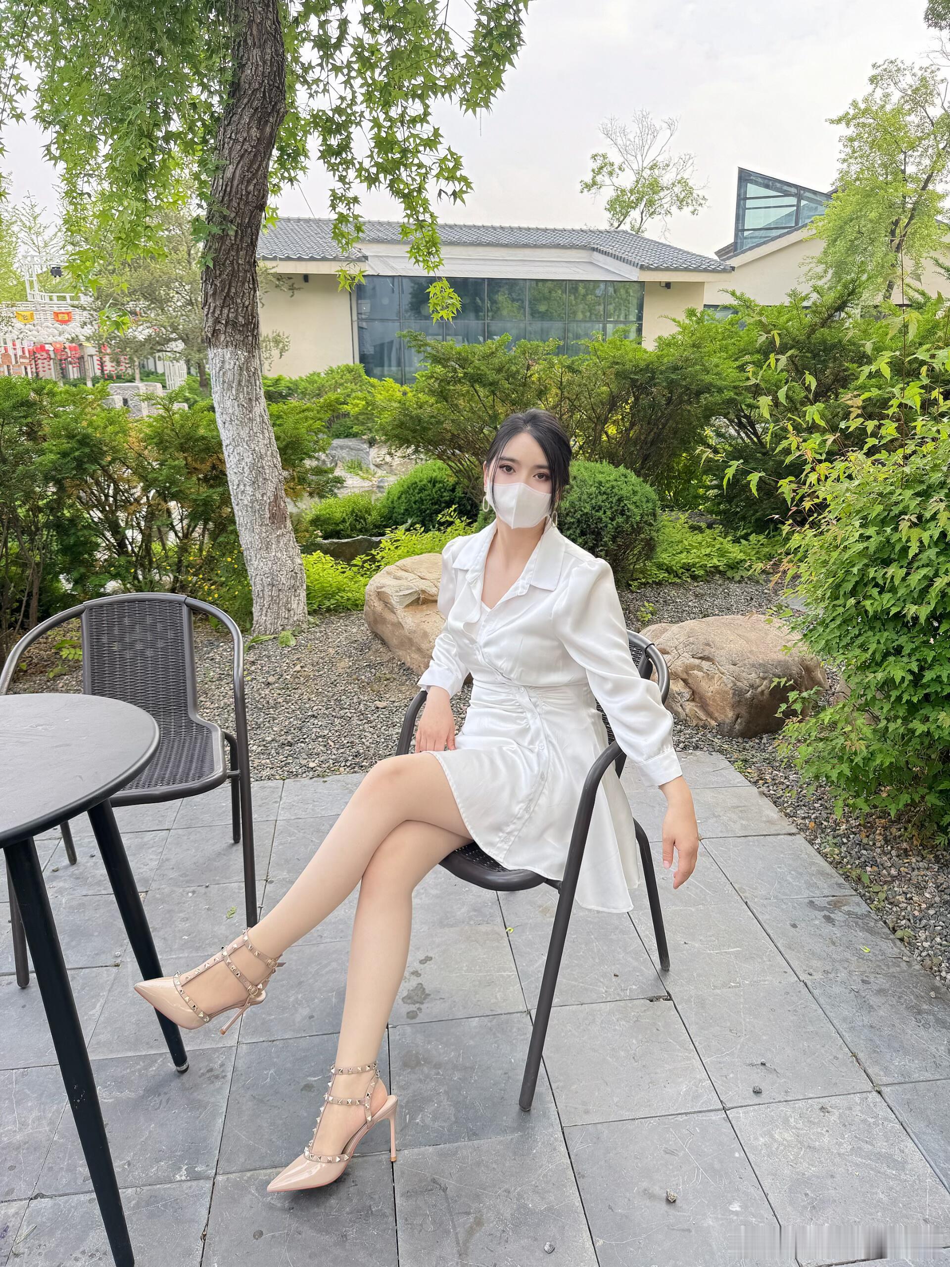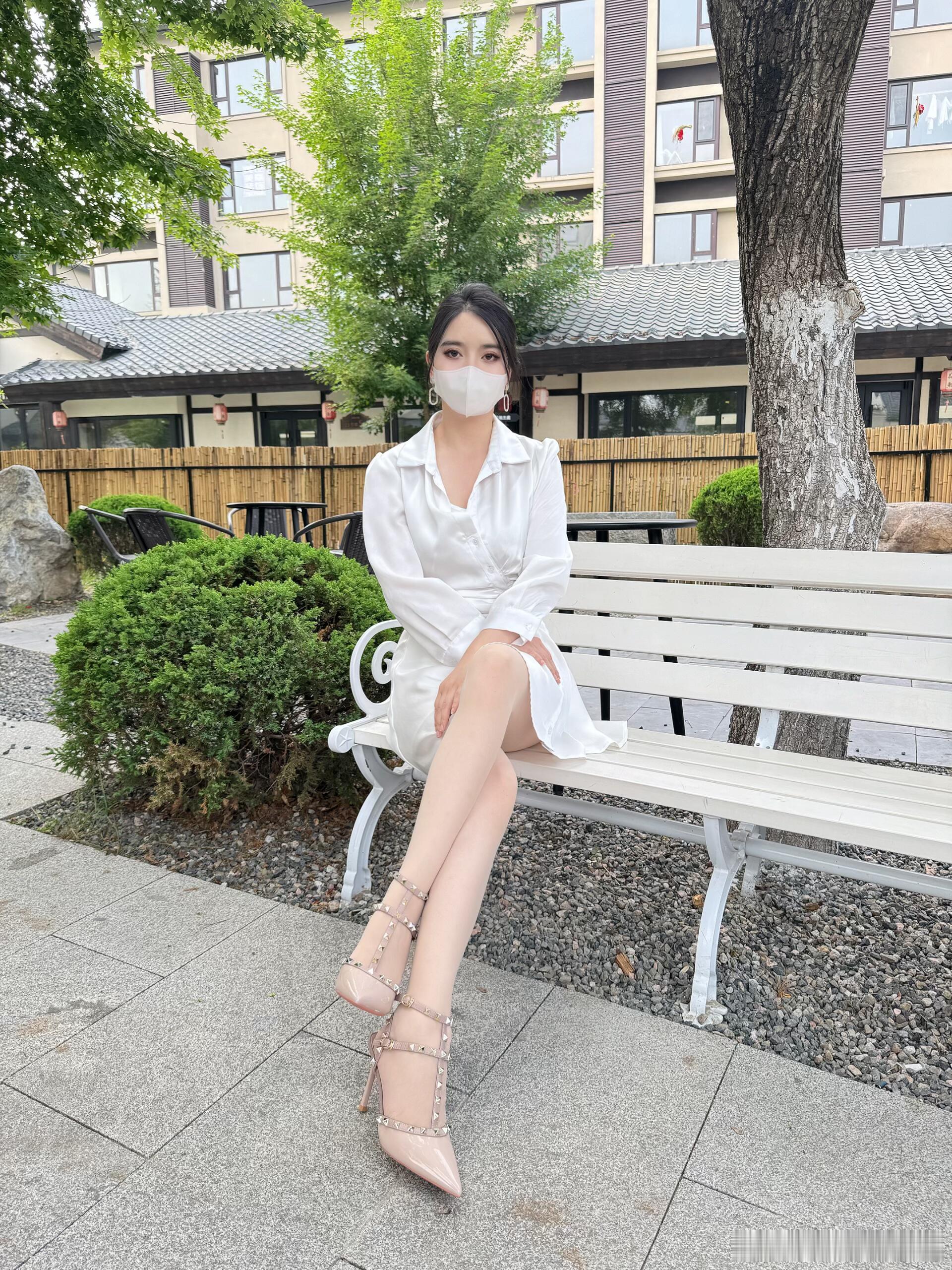 街拍美女好身材,高端大气上档次的穿搭分享街拍风采浅色职业高跟鞋你有吗?街拍
