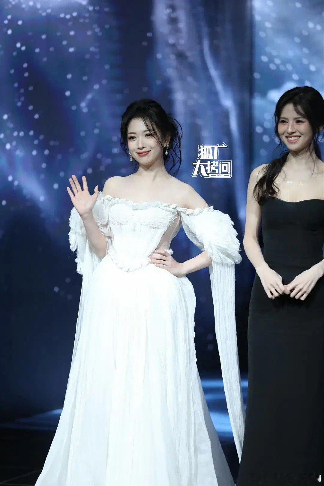 周雨彤是懂时尚穿搭的,卷发黑裙,满满的优雅格调。周雨彤