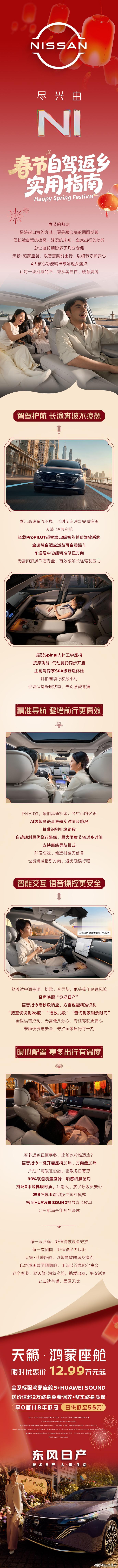 天籁鸿蒙12万起送终身双保天籁搭载鸿蒙座舱,四大buff加持,能缓解自驾返乡疲惫,出行舒适又安心,12.99万起,还送终身双保。天籁鸿蒙座舱天籁12.99万起全系标配鸿蒙座舱5