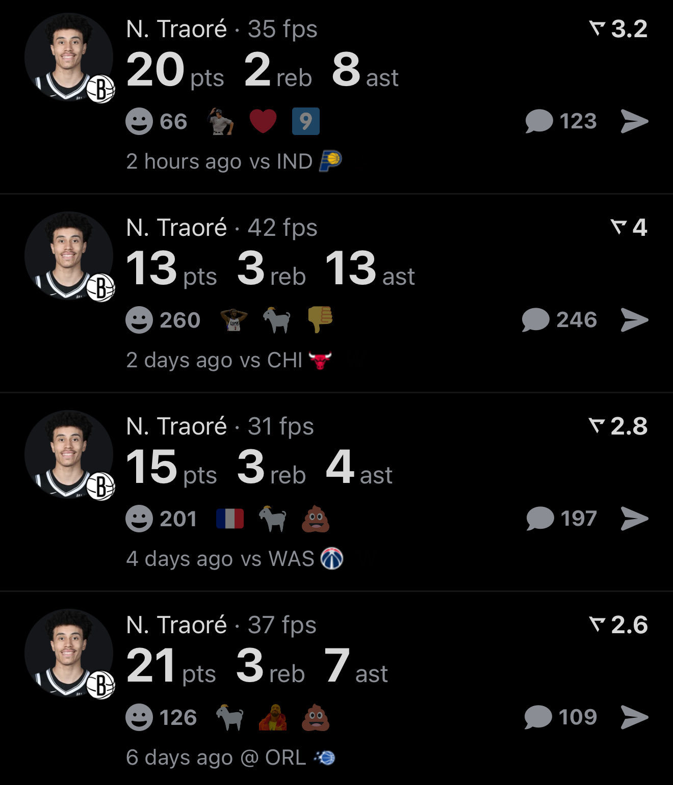 特劳雷又是一场20+8,近4战场均17.3分8助攻,三分15中7。杰明和沃尔夫都得分上双,萨拉夫12分平个人最高。夏普打出了一场近乎完美的比赛,就是那个抢断有点吓人!NBA步行者vs篮网