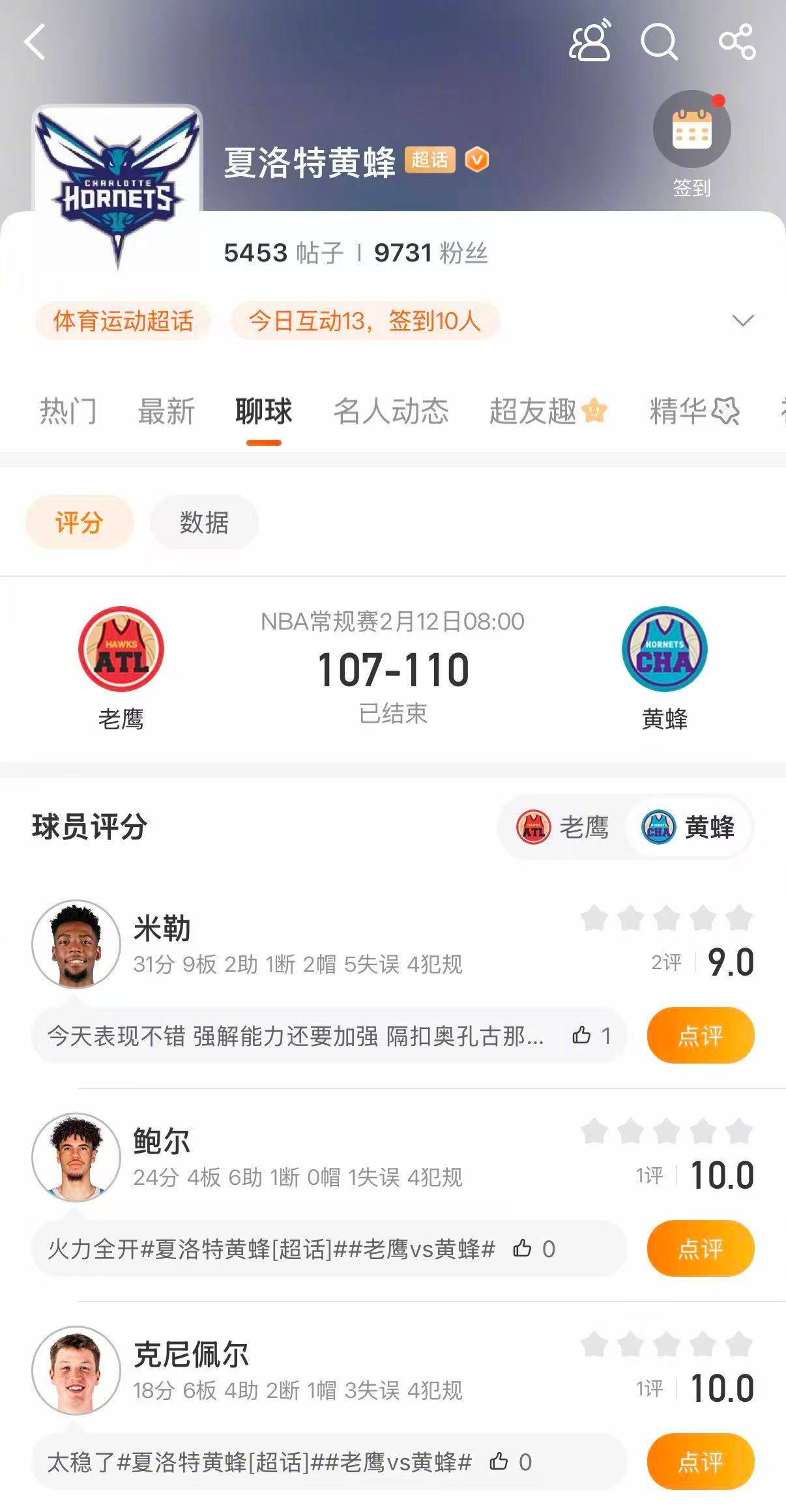 欢迎大家进入球队超话夏洛特黄蜂亚特兰大老鹰 对球员表现进行评分!