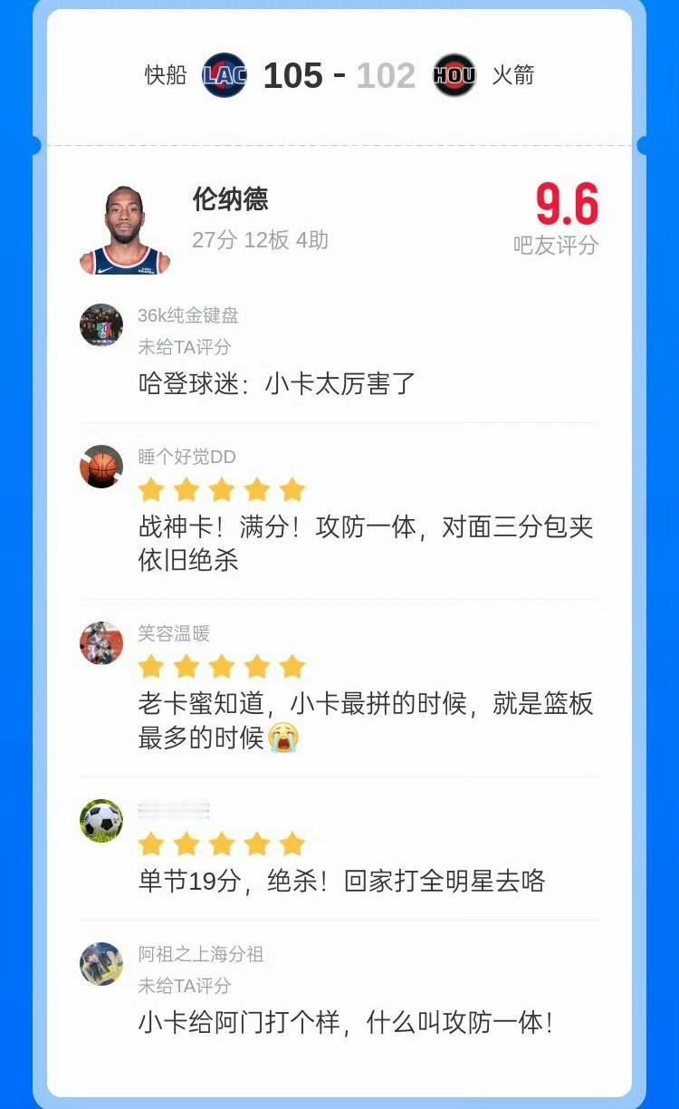 这两人居然都没去全明星赛?不知道肖光头在想什么,英格拉姆比他们强吗? 得到哈登的骑士轻描淡写大胜奇才,快船失去哈登,伦纳德末节杀神附体打成2+1,客场准绝杀瞧不上哈登的火箭。 如此牛逼的表现,还是不能打动肖华。