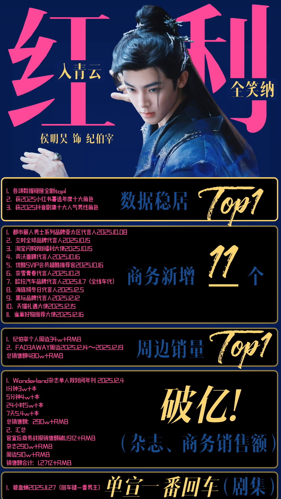 侯明昊入青云以后拿下20个新sw!官方战报累计销售额破亿!sw和杂志就是大爆吸粉和有效播剧最直接的证明。
