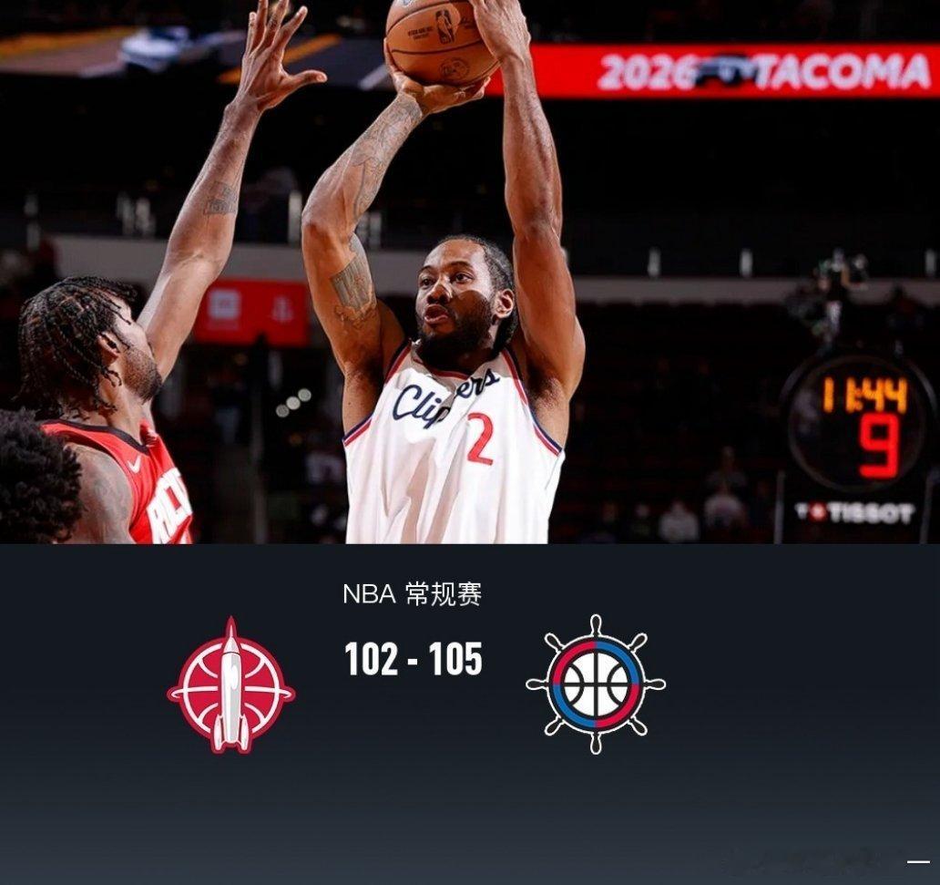 北京时间2月12日NBA 常规赛,休斯顿火箭对阵洛杉矶快船。首节火箭便建立7分优势,次节最大领先15分,半场火箭56-46快船,下半场快船展开持续反扑末节中一度反超7分,随后火箭杜兰特连续得分追上比分,比赛最后时刻快船伦纳德2+1绝杀,最后2秒火箭伊森绝平三分不中,其中末节伦纳德轰下19分,最终快船105-102逆转火箭。