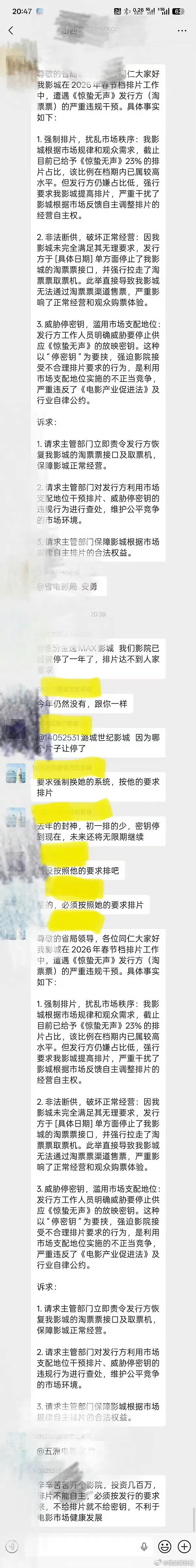 真的假的🤨有影院控诉《惊蛰无声》强制排片,不按它的要求排片就不给密钥,这么霸道