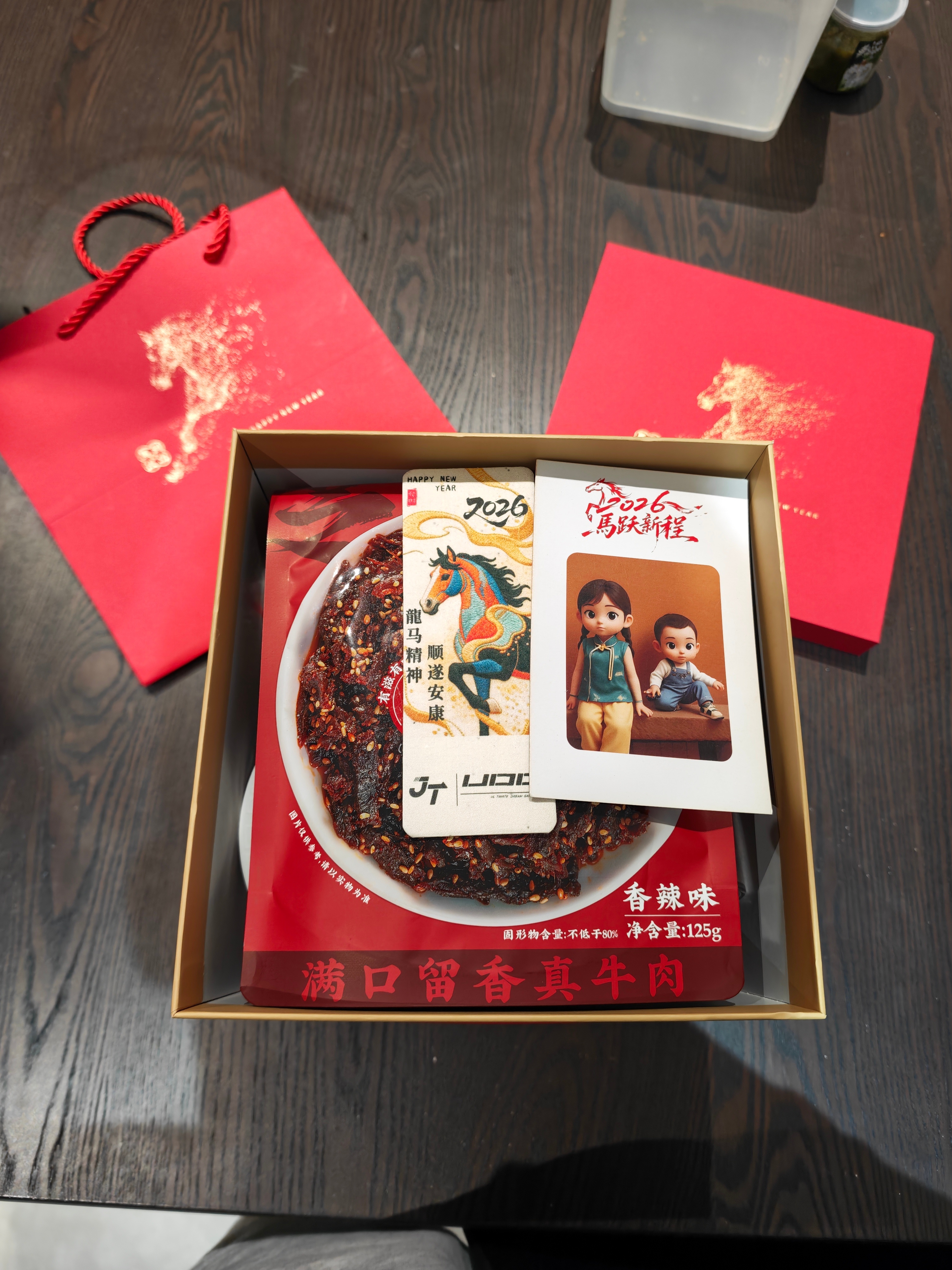 没想到不是他,而是跟,非常地突然且Surprise,送的东西还都是我特别喜欢吃的,牛肉干,芒果干,核桃仁等等等。