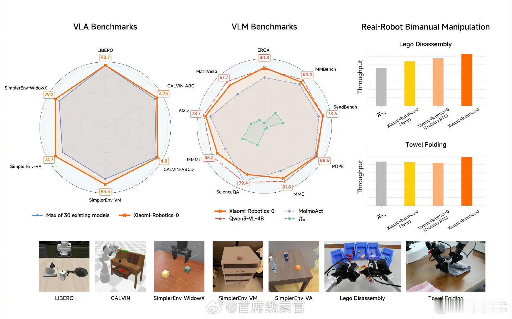 小米开源了其首代机器人 VLA 大模型 Xiaomi-Robotics-0,拥有 47 亿参数,兼具视觉语言理解与高性能实时执行能力。