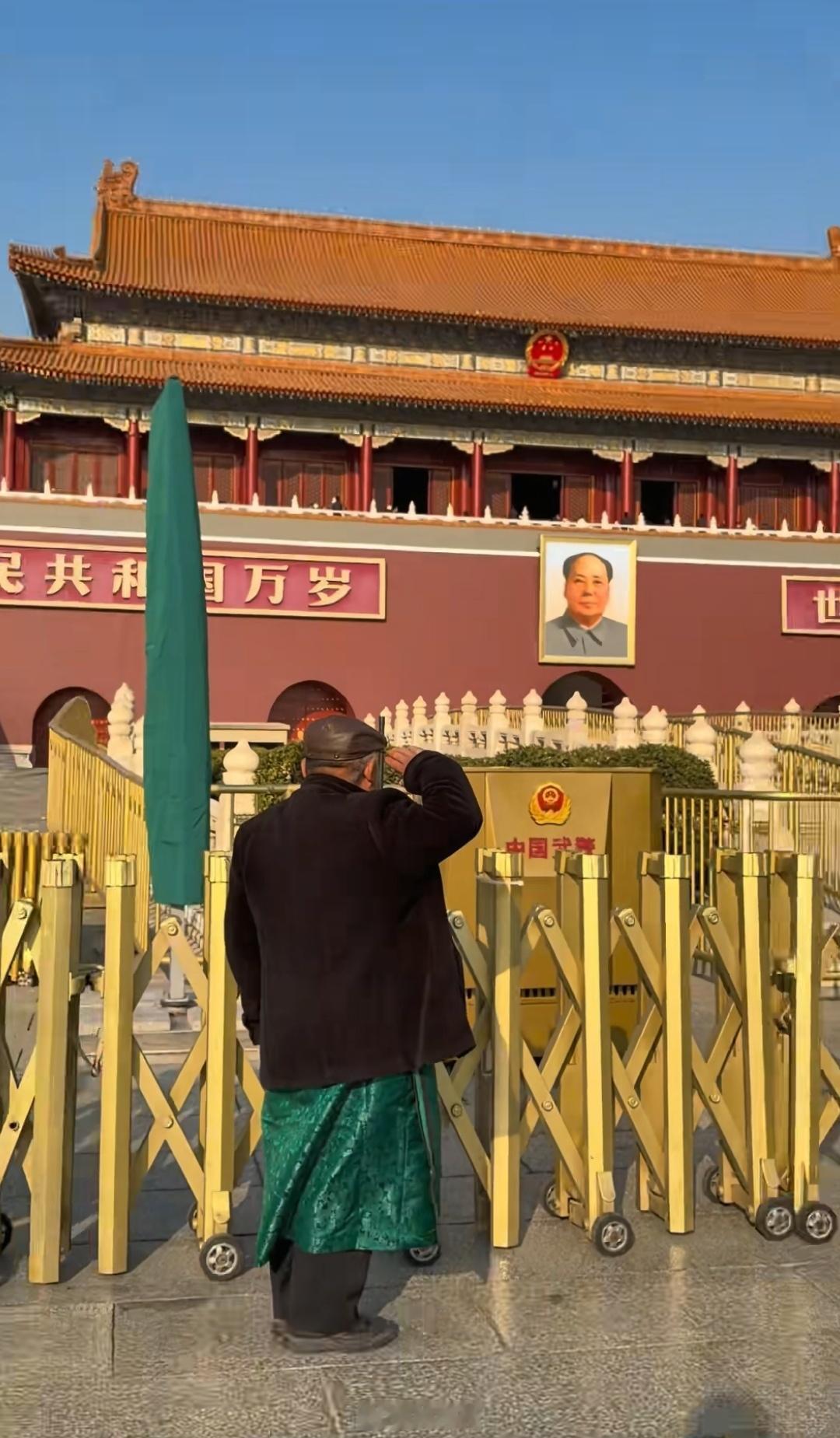 这位来自新疆的老人,退伍证首页是天安门版本的教员像。前段时间,在女儿的帮助下,终于完成了这个攒了一辈子的心愿。