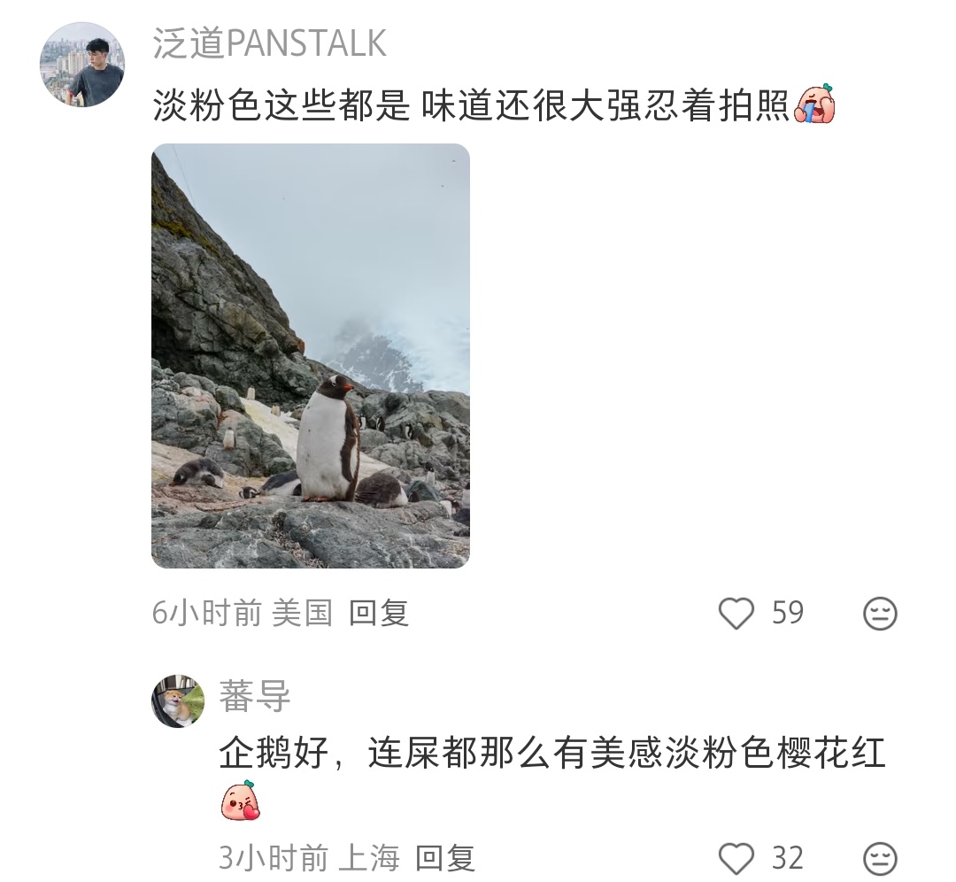 原来南极并不是像电视上看起来的那么干净清新啊,竟然有这么多企鹅的便便,味道熏人
