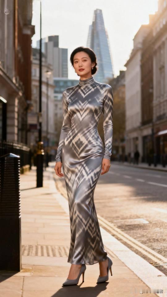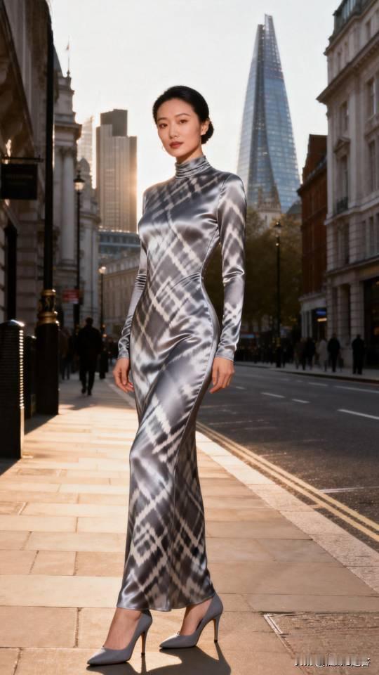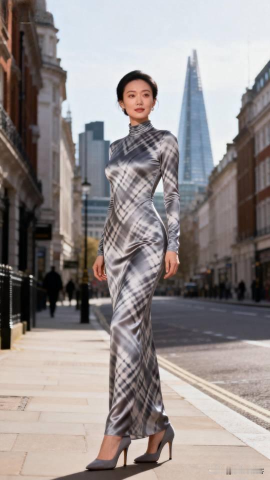 都市摩登风:黑白格纹长裙,优雅街拍。连衣长裙 美女壁纸