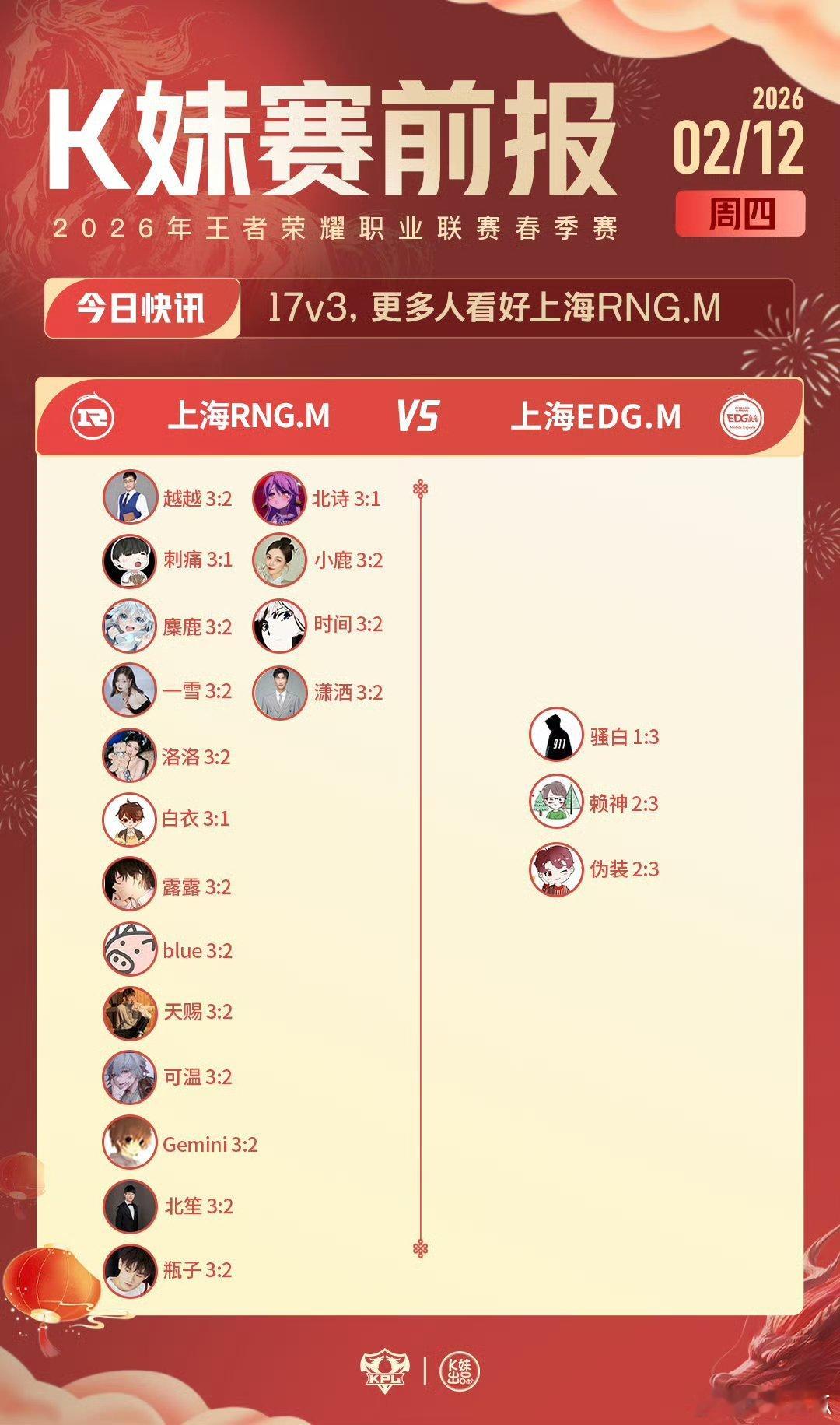 17v3,更多人看好上海RNG.M;19v1,blue一人力挺济南RW侠;5v15,更多人看好长沙TES.A。