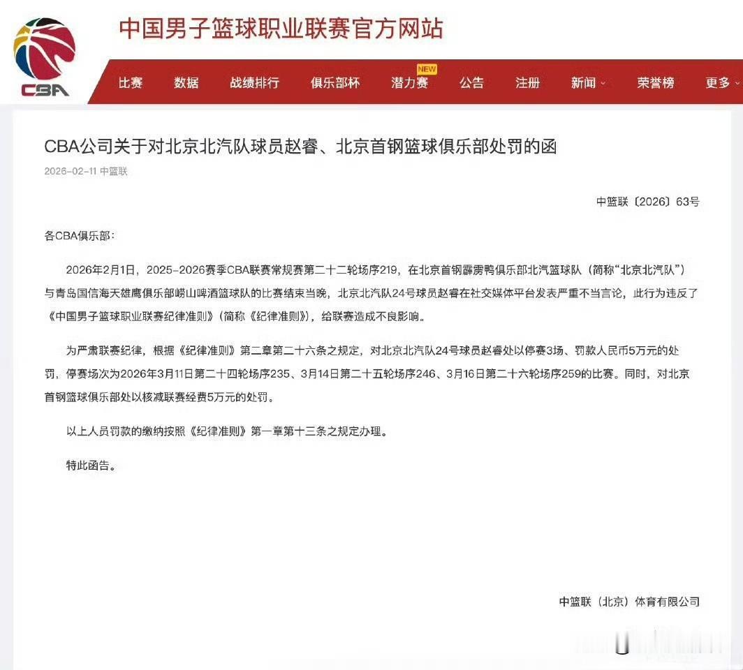 CBA官方通报处罚赵睿,处罚结果其实已是“手下留情”。赵睿已经不是小孩子,30周岁的男人放在几十年前都是抱孙子的年纪,还那么小孩子气,跟球迷、网友在社交媒体置气,进而互相攻击,甚至对球迷的人身批判攻击上升到整个地区,这本身就是非常幼稚的行为。此次“停赛三场,个人罚款五万元,北京首钢俱乐部罚款五万元”的处罚已是CBA官方对赵睿手下留情的结果,算是“高高举起 轻轻放下”,并没有扼杀赵睿整个职业生涯和大好前程。但是赵睿此次的处罚结果,也是一个警醒案例,你是公众人物,言行举止就得格外谨慎。就好比带领中国女排创造奥运会历史最差战绩的女排队长朱婷,东京奥运会后状告球迷,至今官司缠身、负面不断,都是运动员的反面教材。再看惠若琪、张常宁、袁心玥,还有姚明、大郅等等,都是光明磊落、坦坦荡荡。行得端,走得正,不委于己,不畏于言,这不是每个人都有的境界。